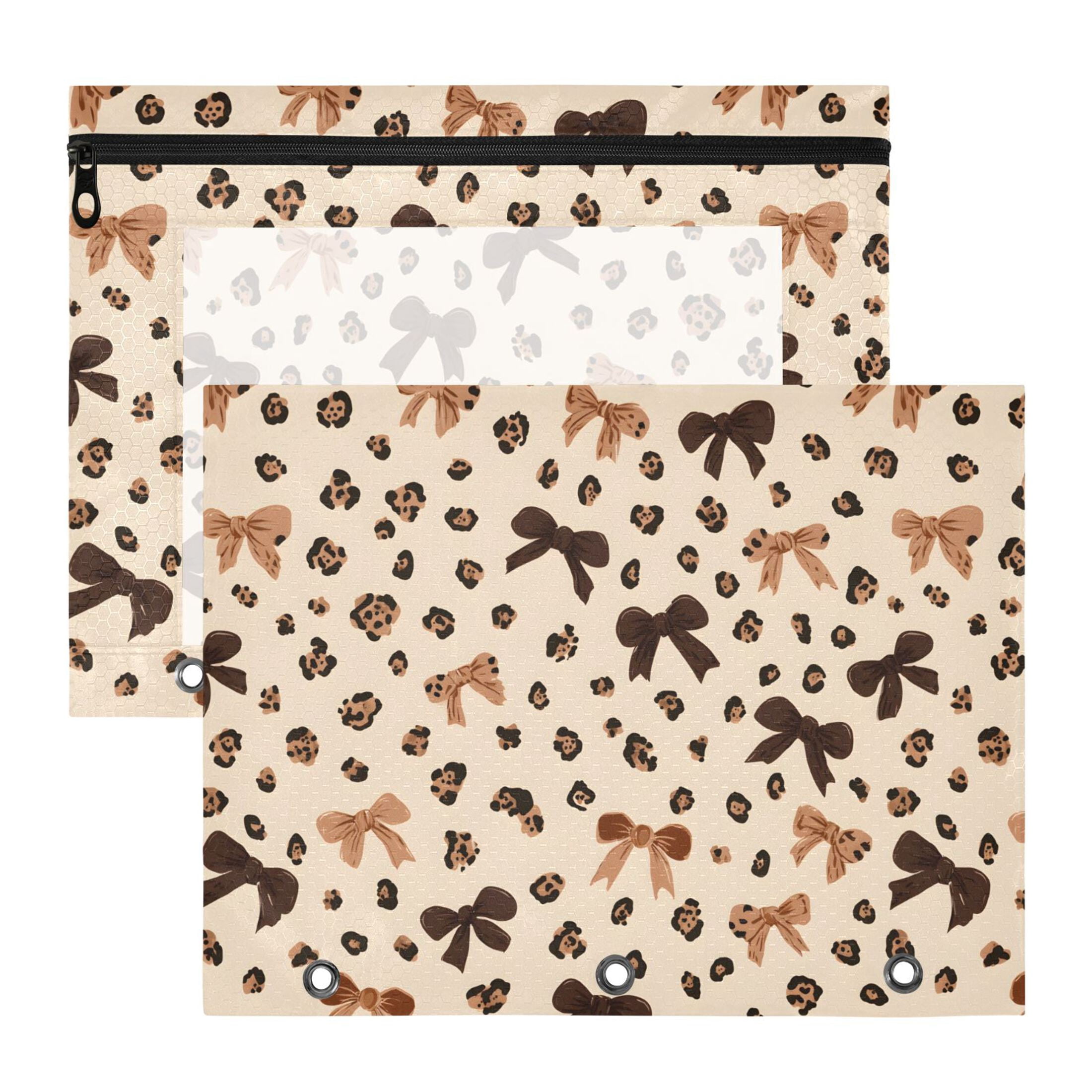 ALAZA Leopard Bows Pattern Pencil Pouch 3 Ring Binder with Clear Window ...