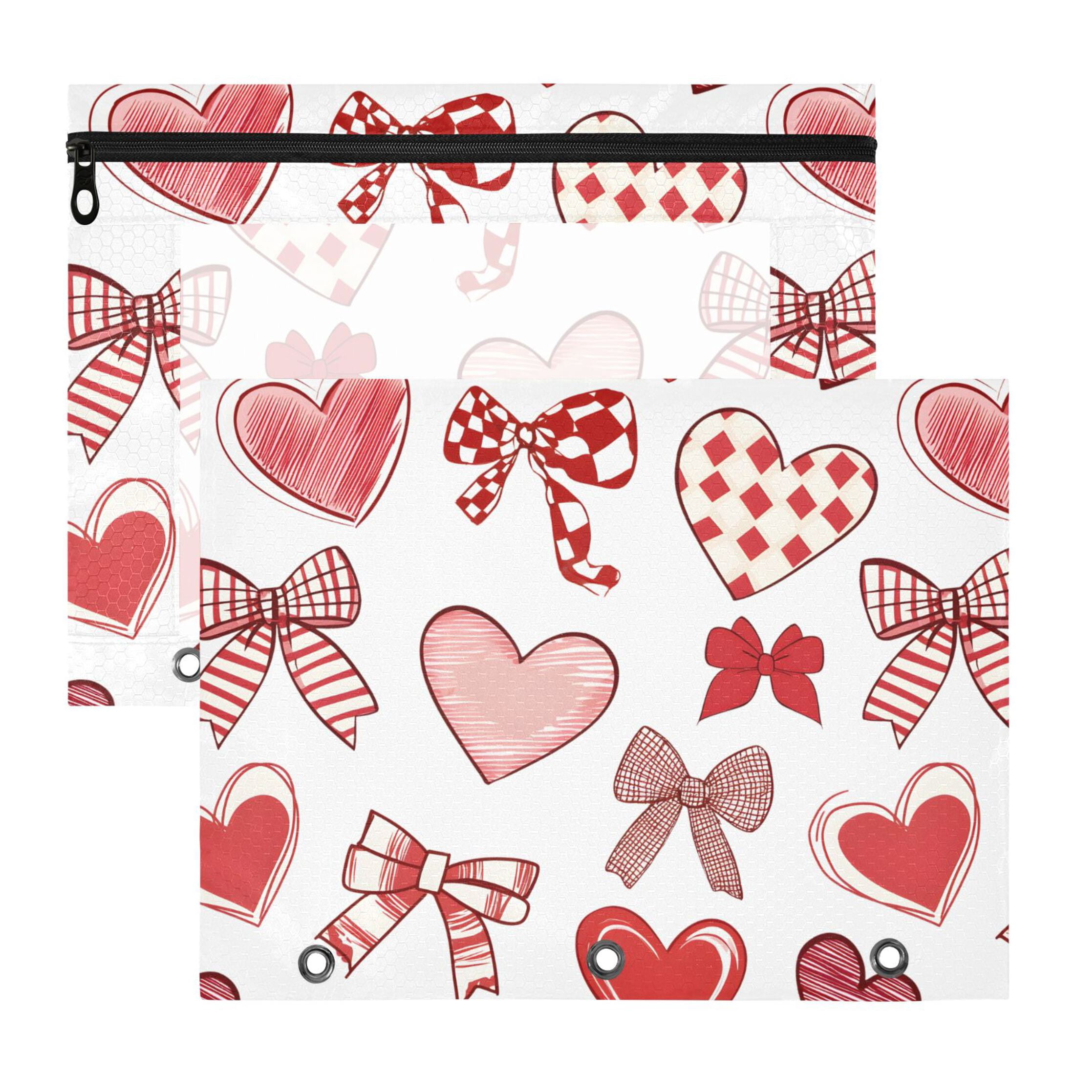 ALAZA Valentine Heart Bows Pattern Pencil Pouch 3 Ring Binder with ...