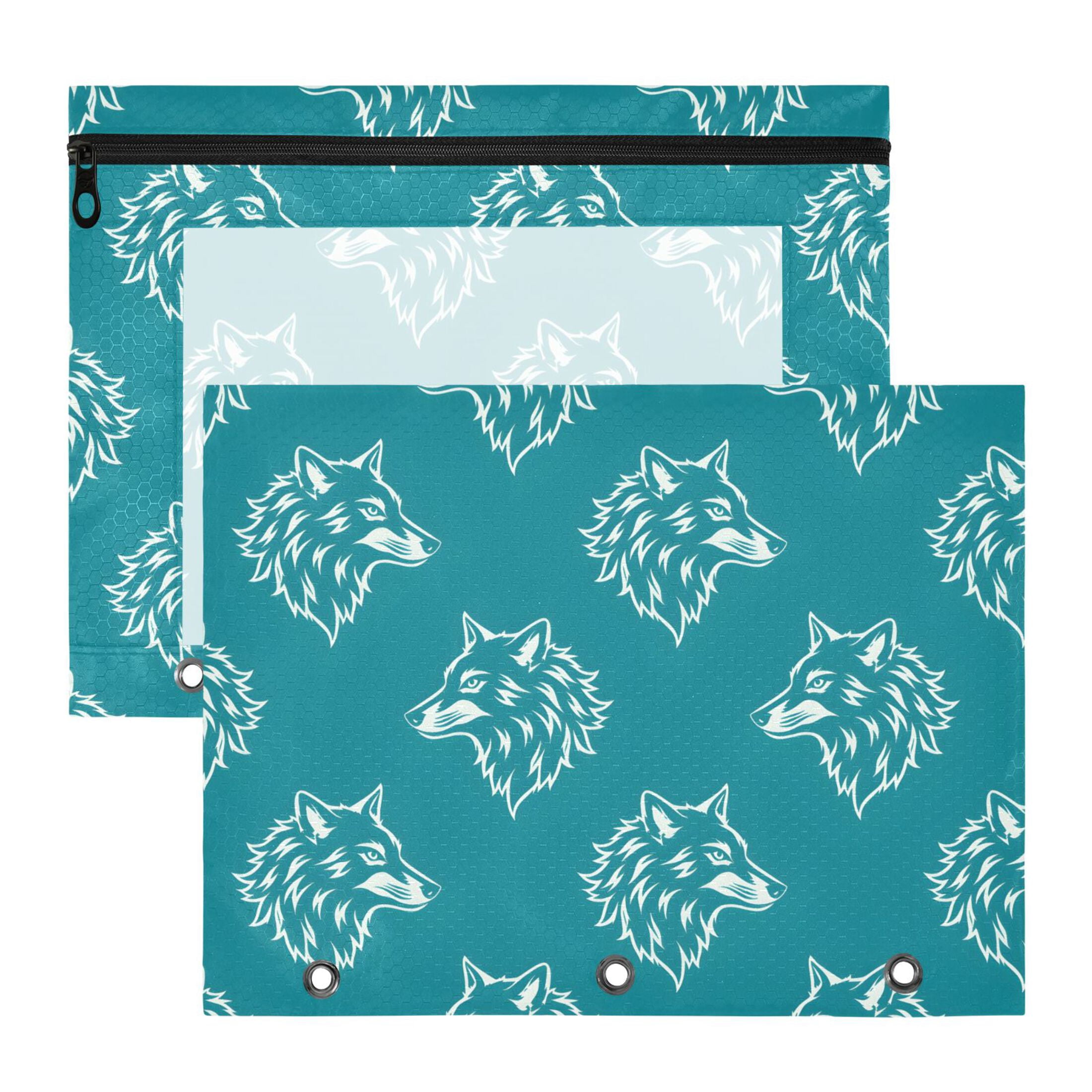 ALAZA Wolf Artistic Pattern Pencil Pouch 3 Ring Binder with Clear ...