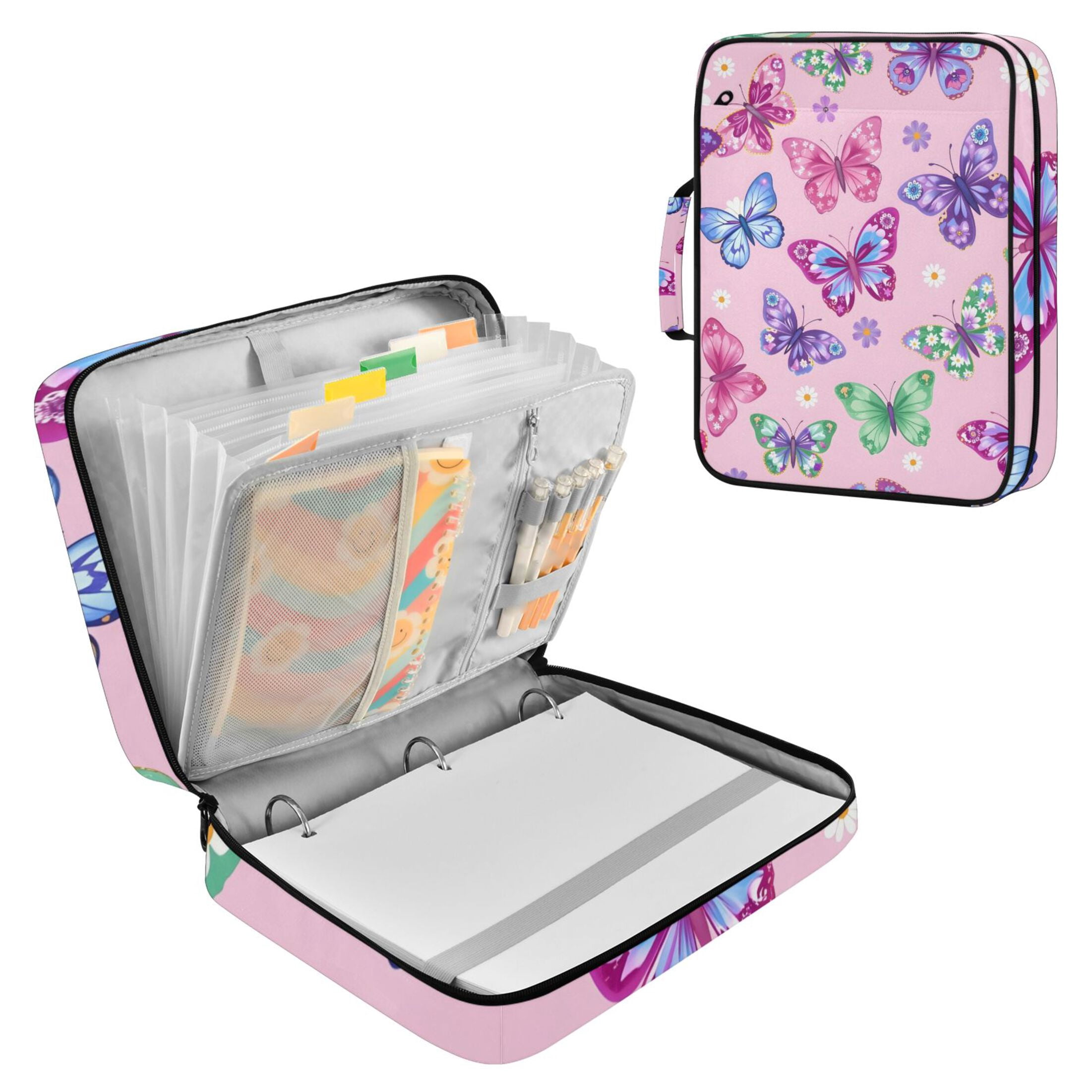 ALAZA Butterfly Flowers Pattern Expanding Accordion File Folder 3 Ring ...