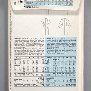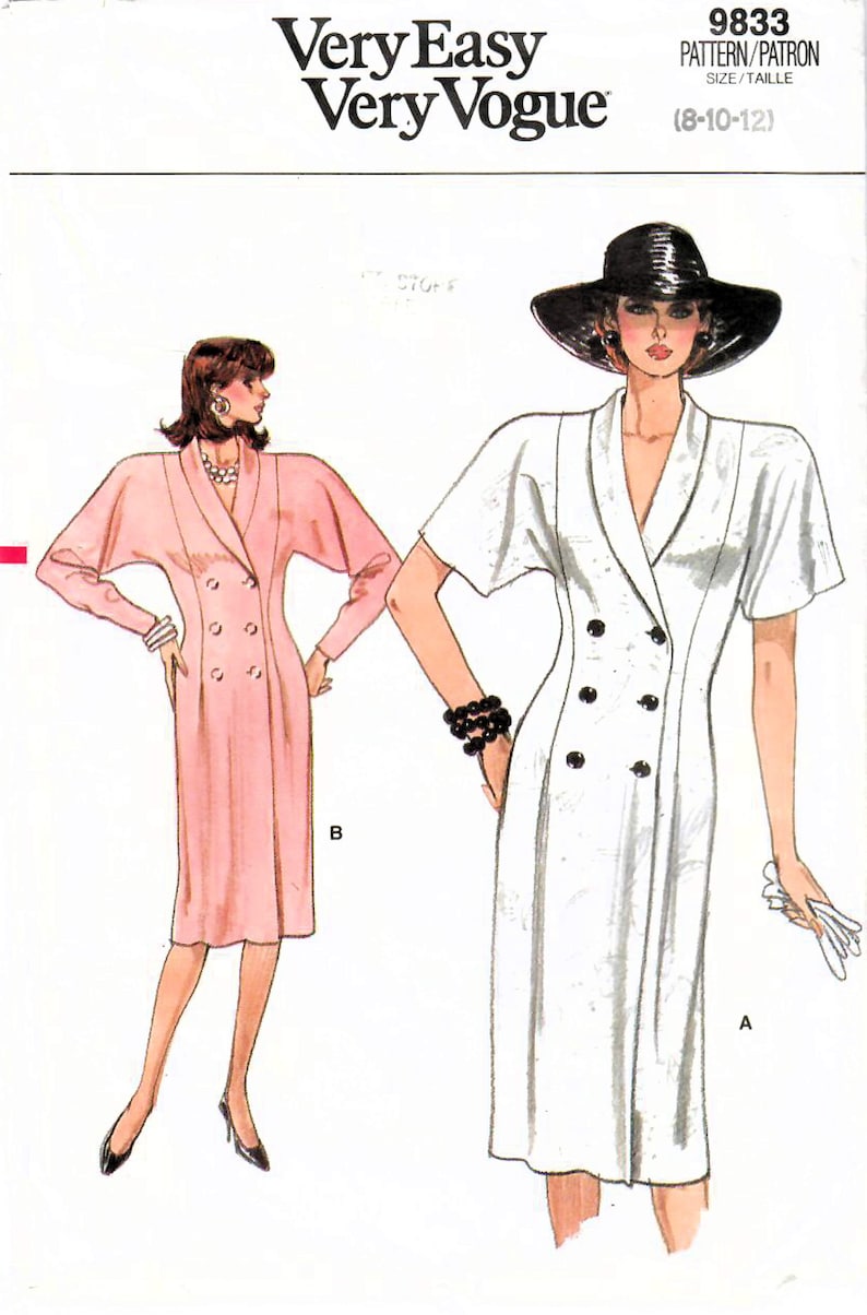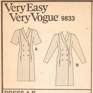 Vintage 1987 New VOGUE DRESS Pattern 9833 Sleek Double Breasted Coach ...