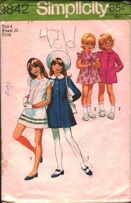 9842 Vintage Simplicity Sewing Pattern Girl 1970s Coat Detachable ...