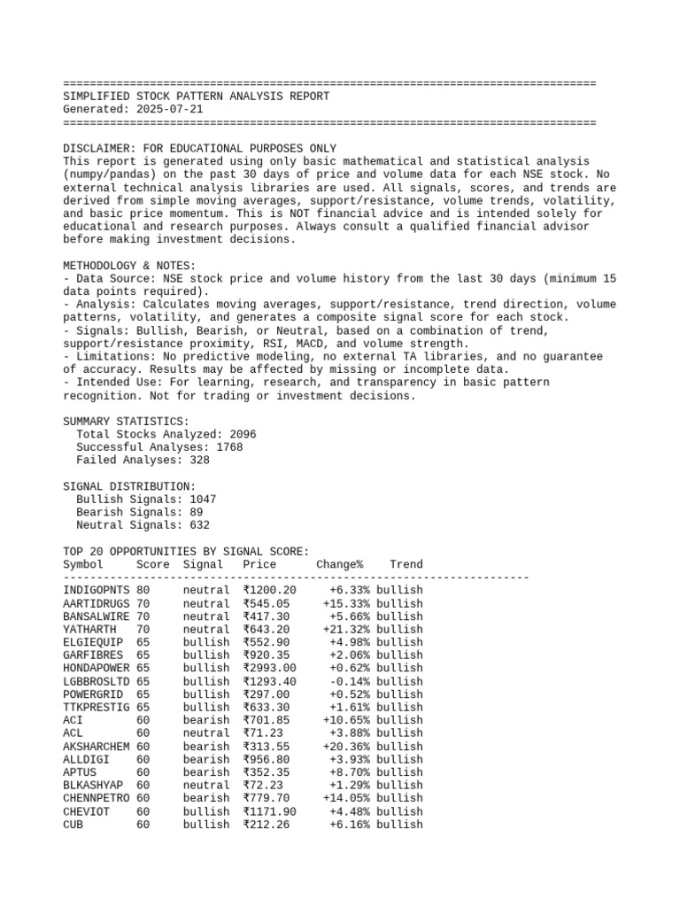 Simple Pattern Analysis Report 20250707 | PDF