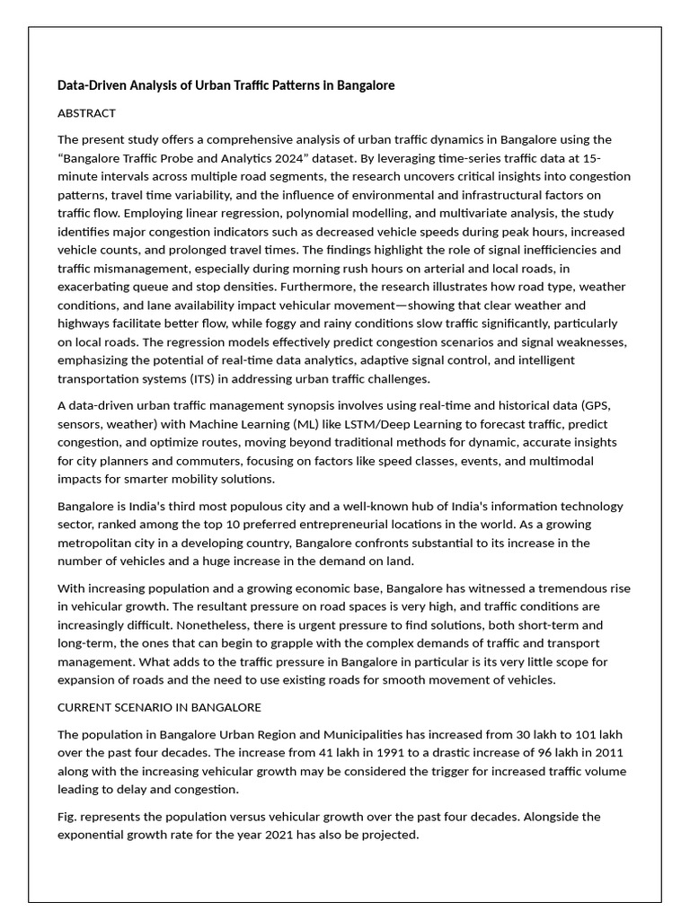 Data-Driven Analysis of Urban Traffic Patterns Project Report | PDF ...