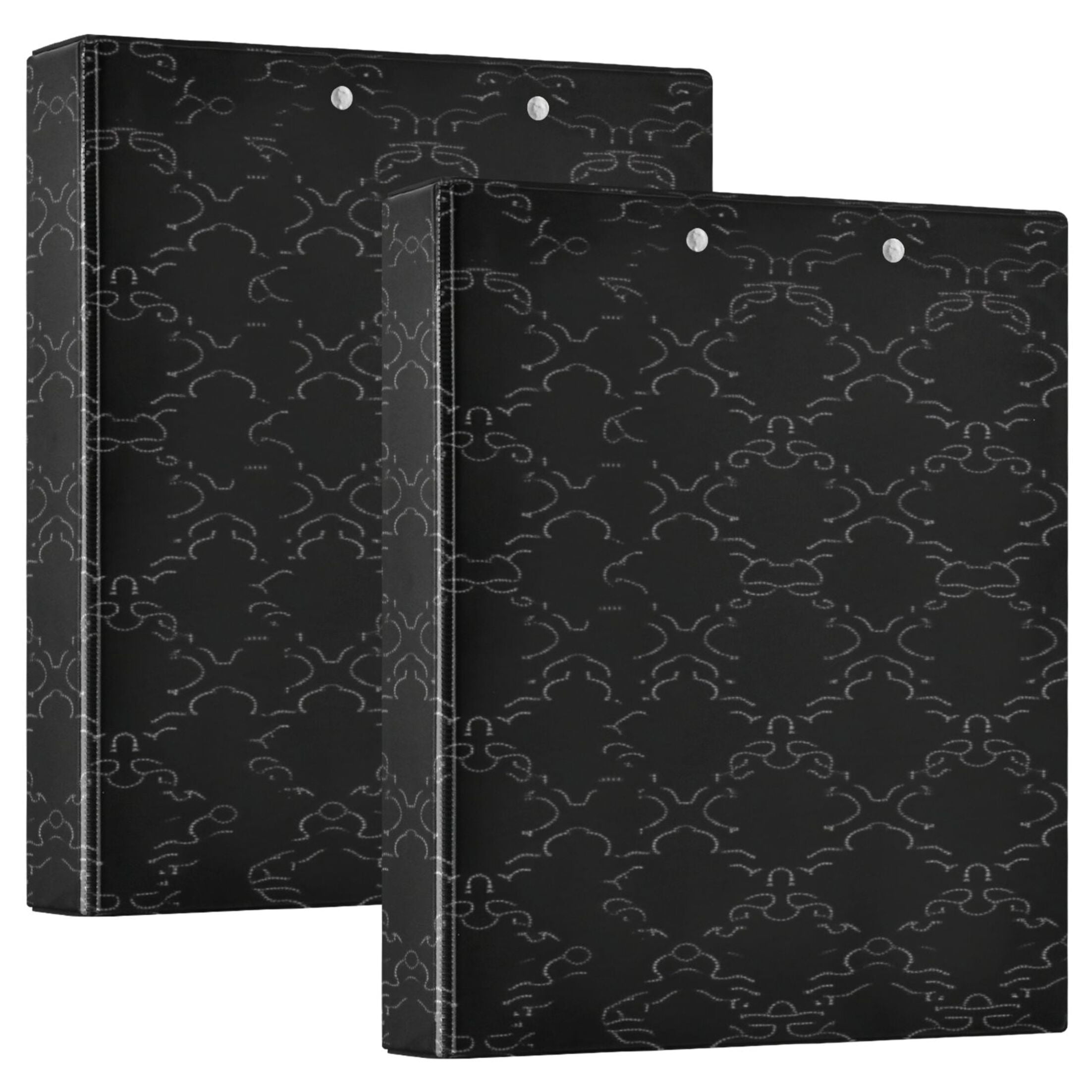 Black Decorative Pattern 12.4x10.6in PVC Round Ring Binders, 2-Pack, D ...