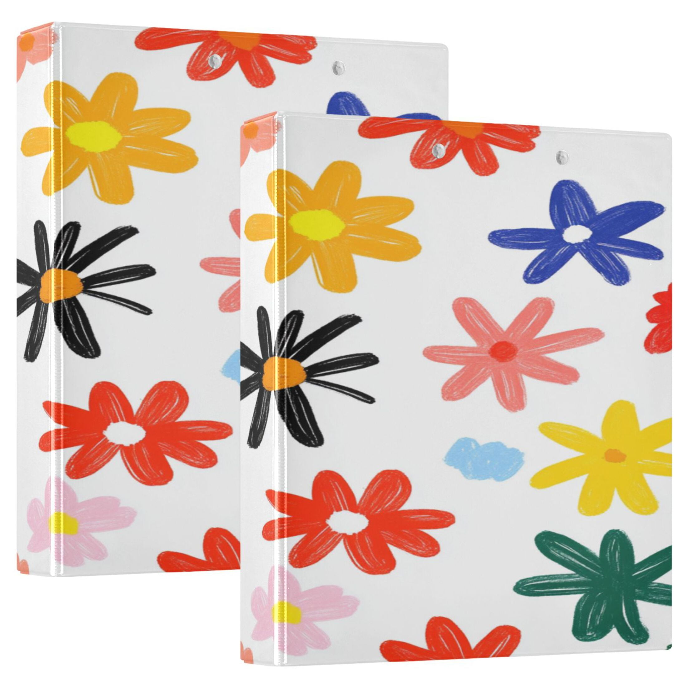 Colorful Flowers Pattern 12.4x10.6in PVC Round Ring Binders, 2-Pack, D ...