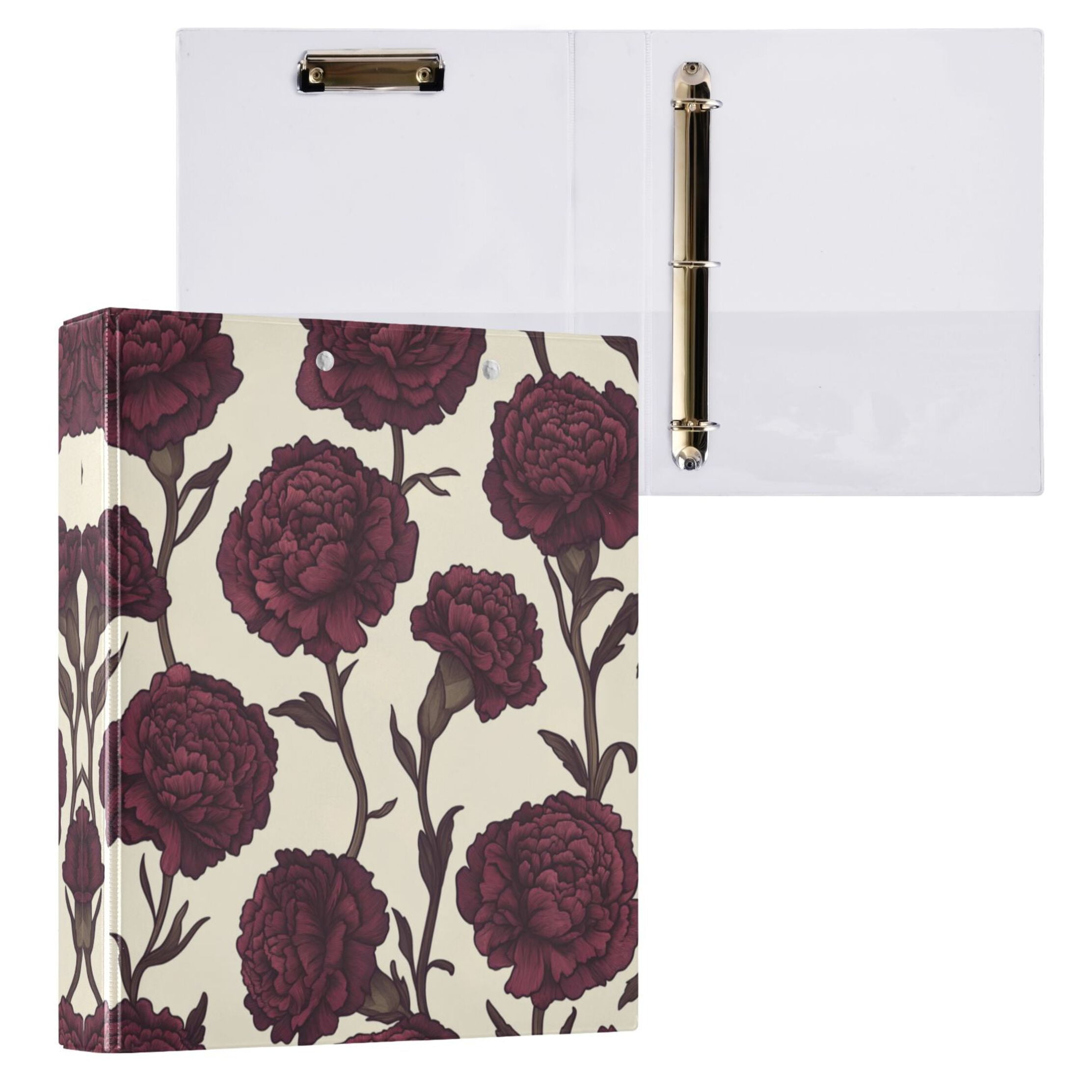 Red Carnations Pattern 3 Ring Hardcover Binders 1.5in Round Rings for ...