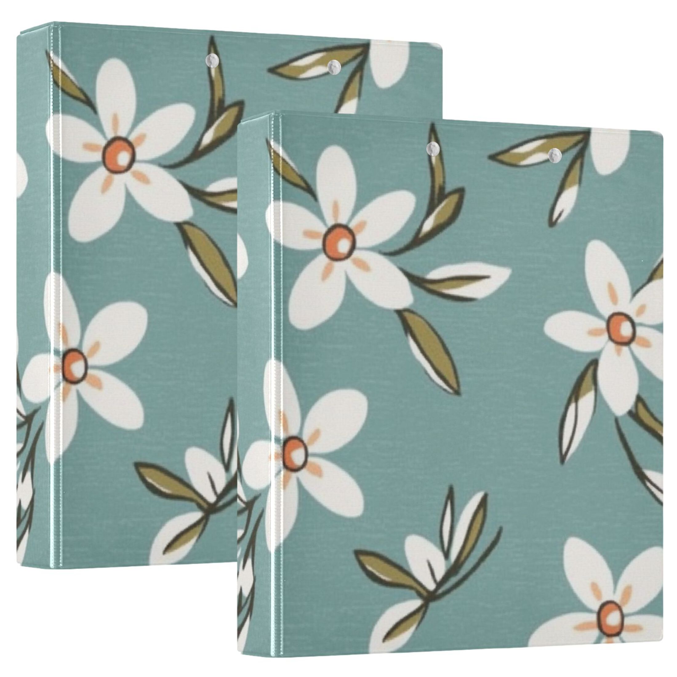 White Flower Pattern 12.4x10.6in PVC Round Ring Binders, 2-Pack, D-Ring ...