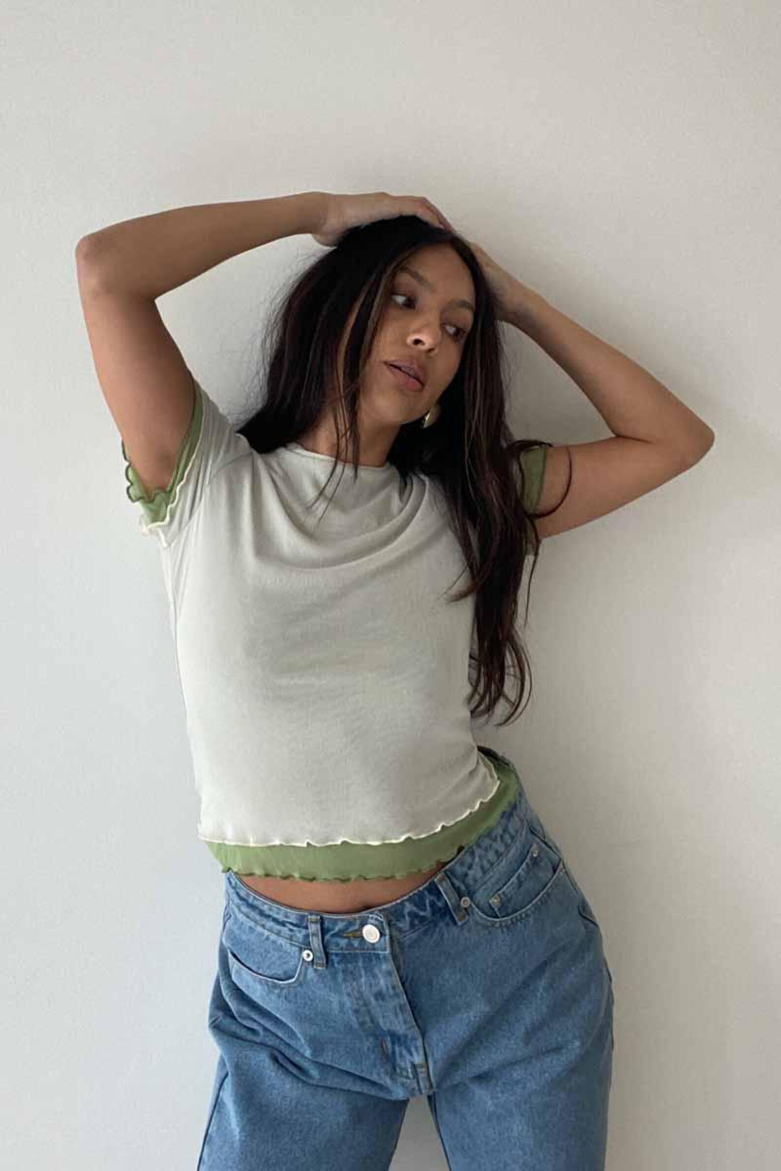 Colour Block Top-stitching Square Neck Crop Tee | Crop top outfits ...