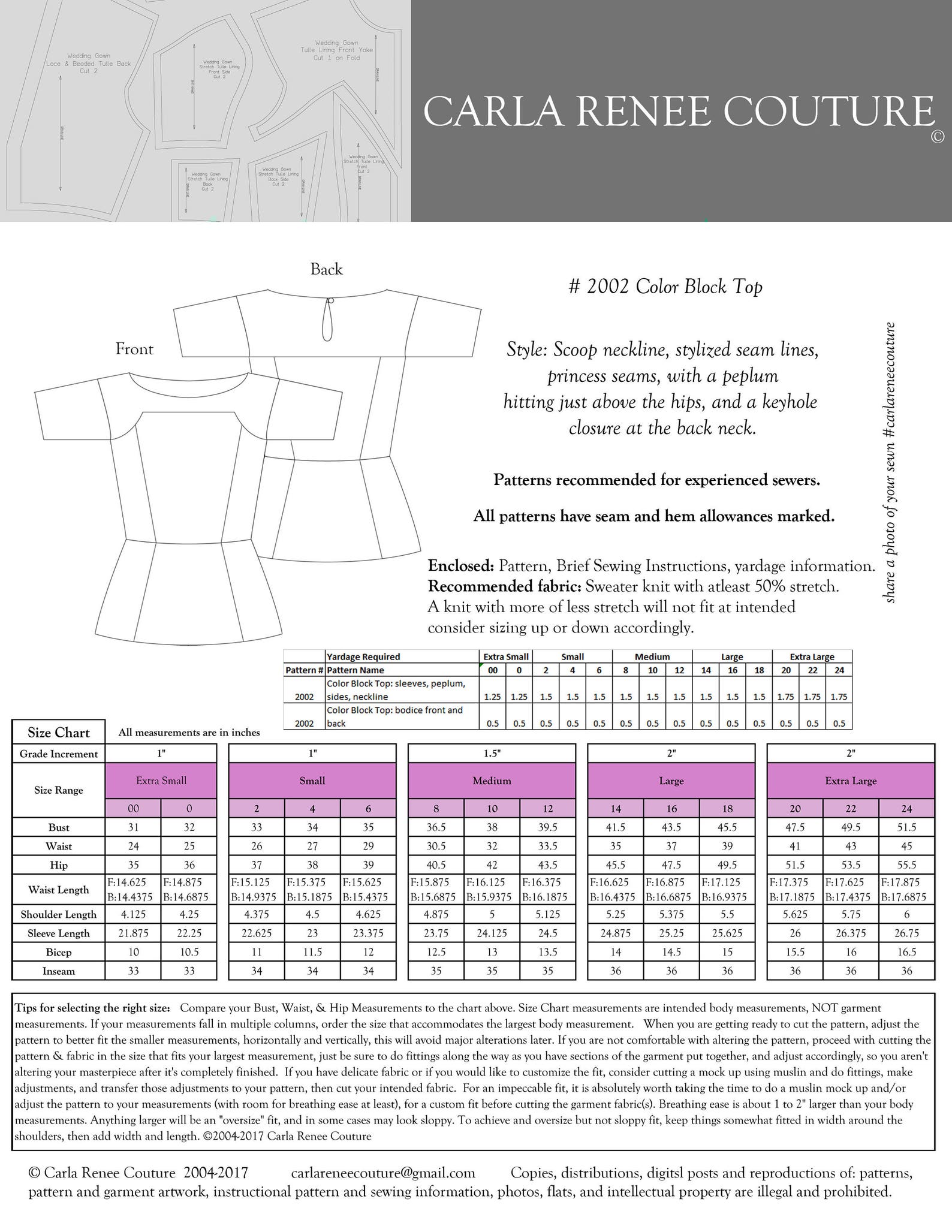 Sewing Pattern for Color Block Top w/ peplum & keyhole back