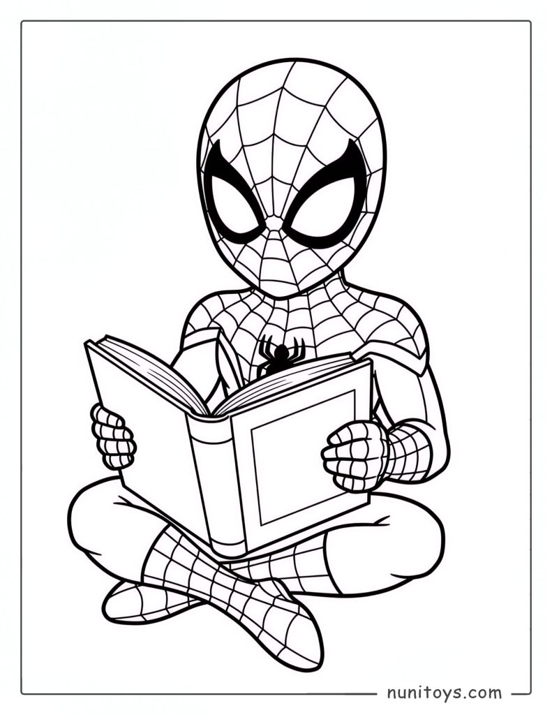 Spiderman Reading Book Coloring Page - Free PDF