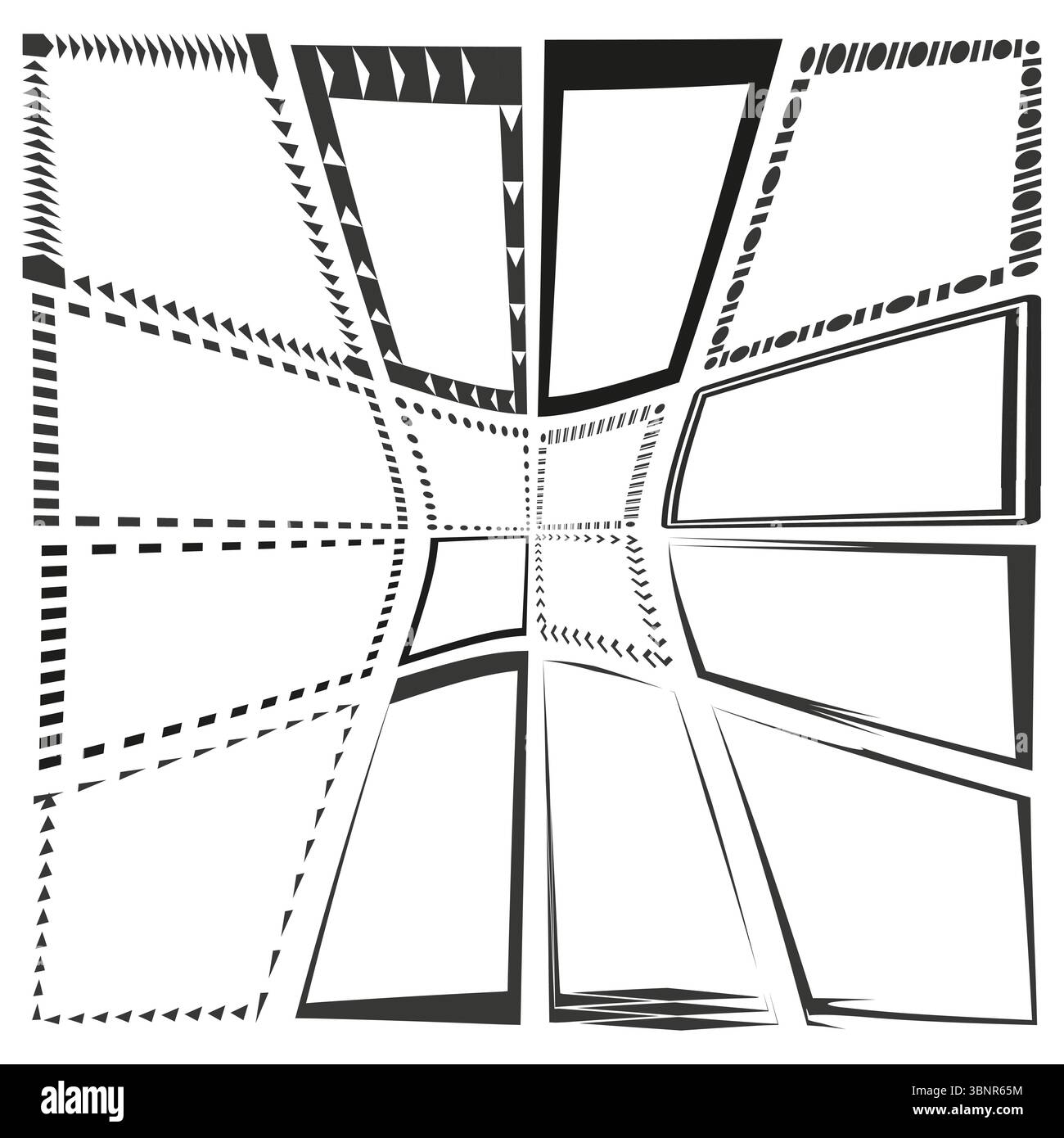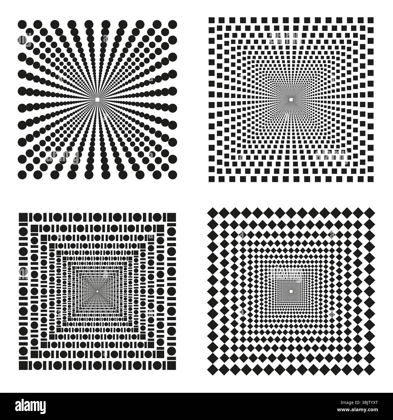 Radial square patterns. Central perspective layout. Abstract dotted ...