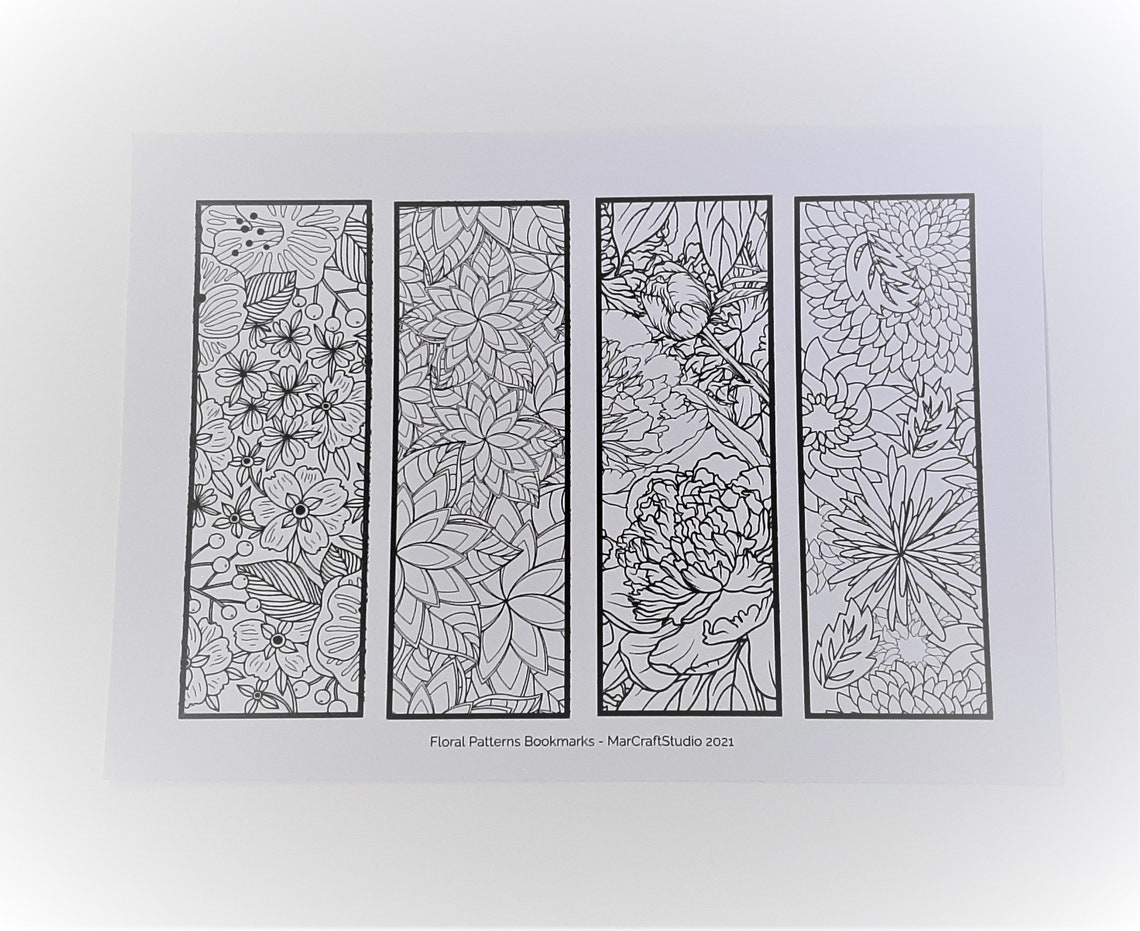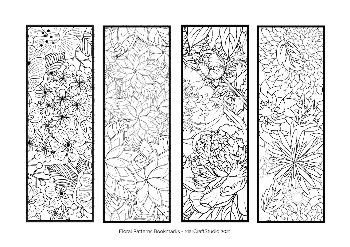 Printable Coloring Bookmarks | Floral Patterns | JPG File | PDF File ...