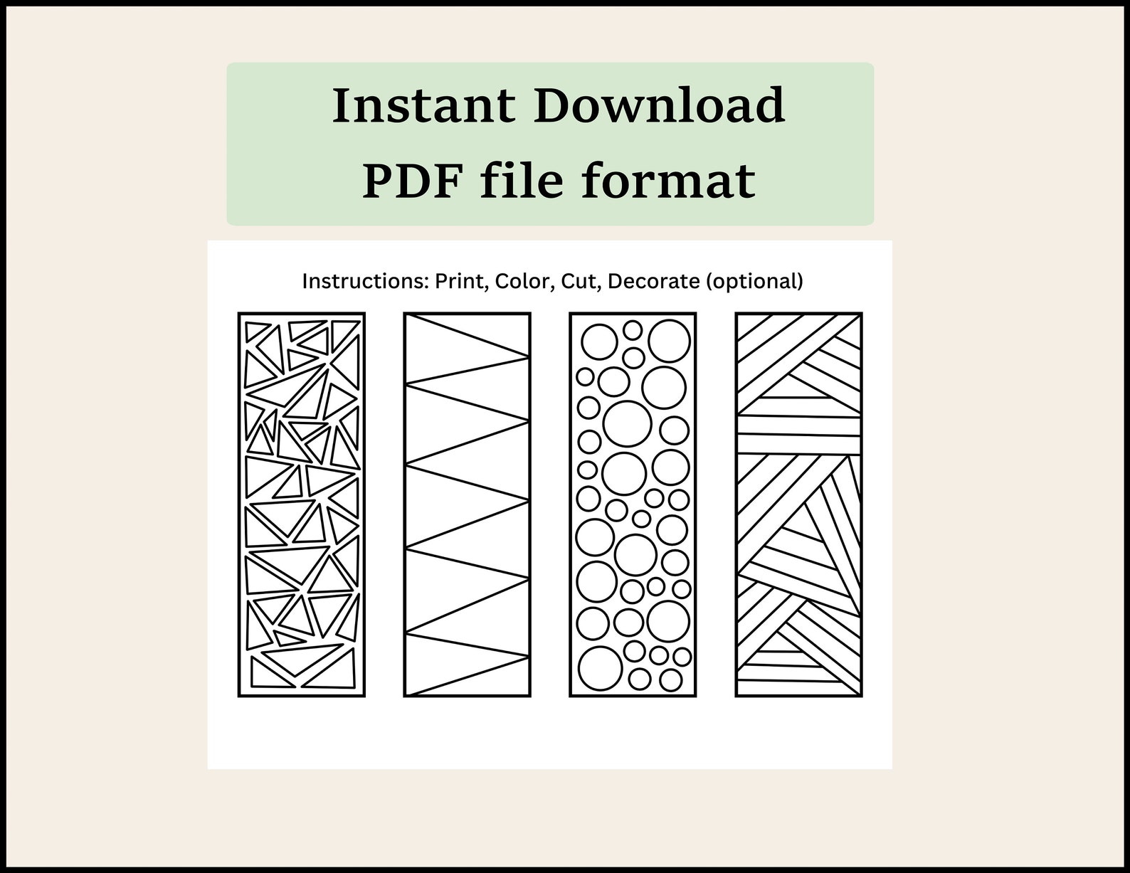 Printable Coloring Bookmarks | Geometric Patterns | JPG File | PDF File ...