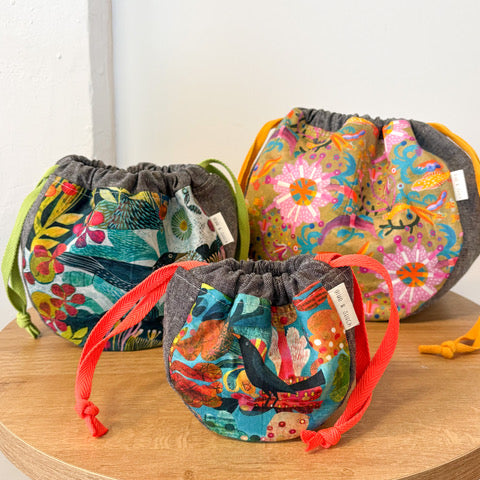 Saori Drawstring Pouch PDF sewing pattern + video tutorial: 3 sizes ...