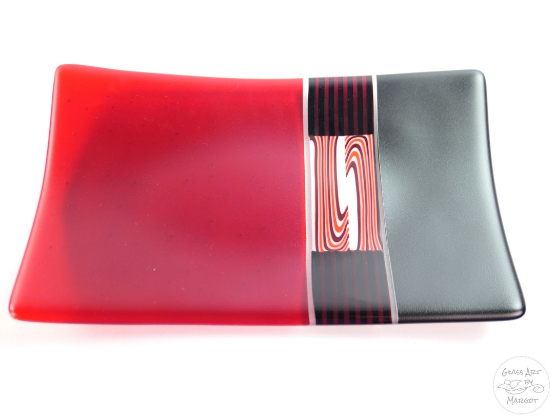 Fused Glass Art Tray Red & Black Flow Bar Pattern - Etsy