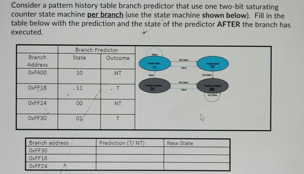 Solved Consider a pattern history table branch predictor | Chegg.com
