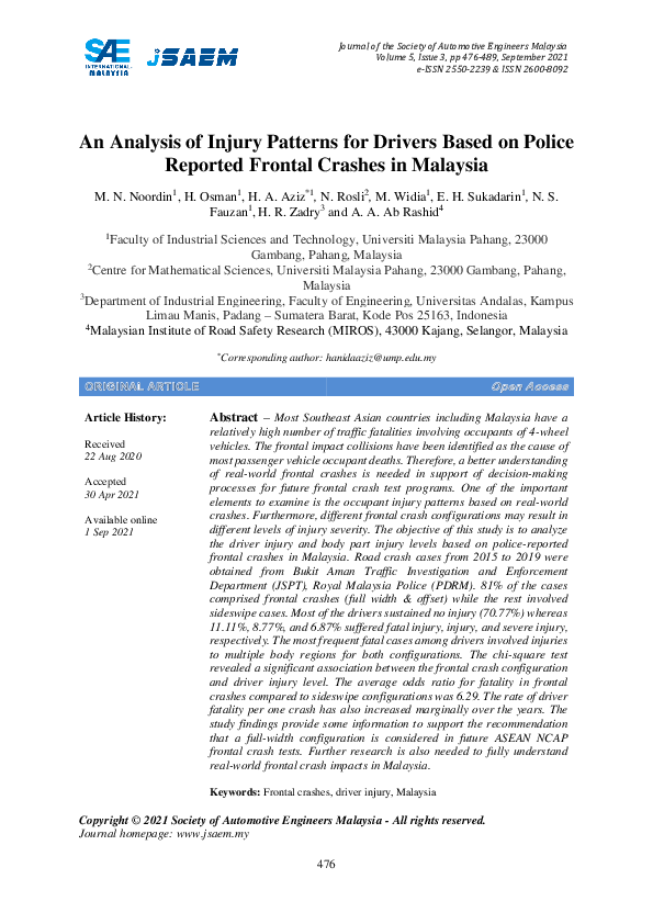 (PDF) Injury Pattern Analysis as a Means of Driver Identification