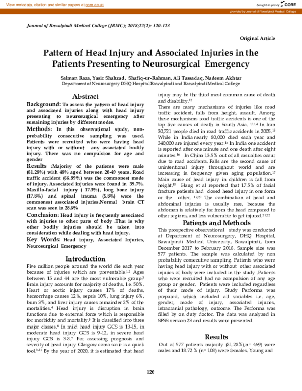 (PDF) Pattern of Head Injury and Associated Injuries in the Patients ...
