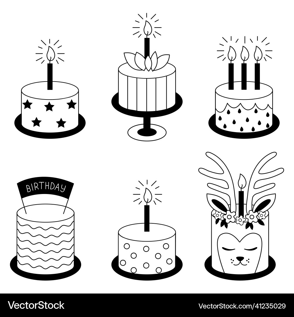 Line Art Birthday Cake Vector Set Graphic by Digital Products ...