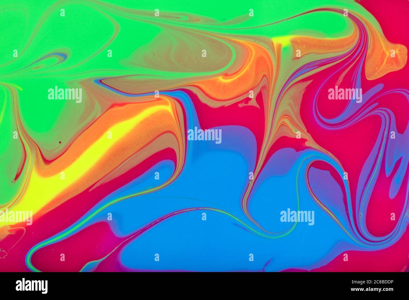Colorful liquid flowing over surface creating vibrant patterns ...