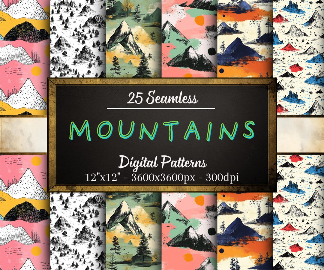 Mountain Patterns Illustration Set Seamless Patterns Digital - Etsy