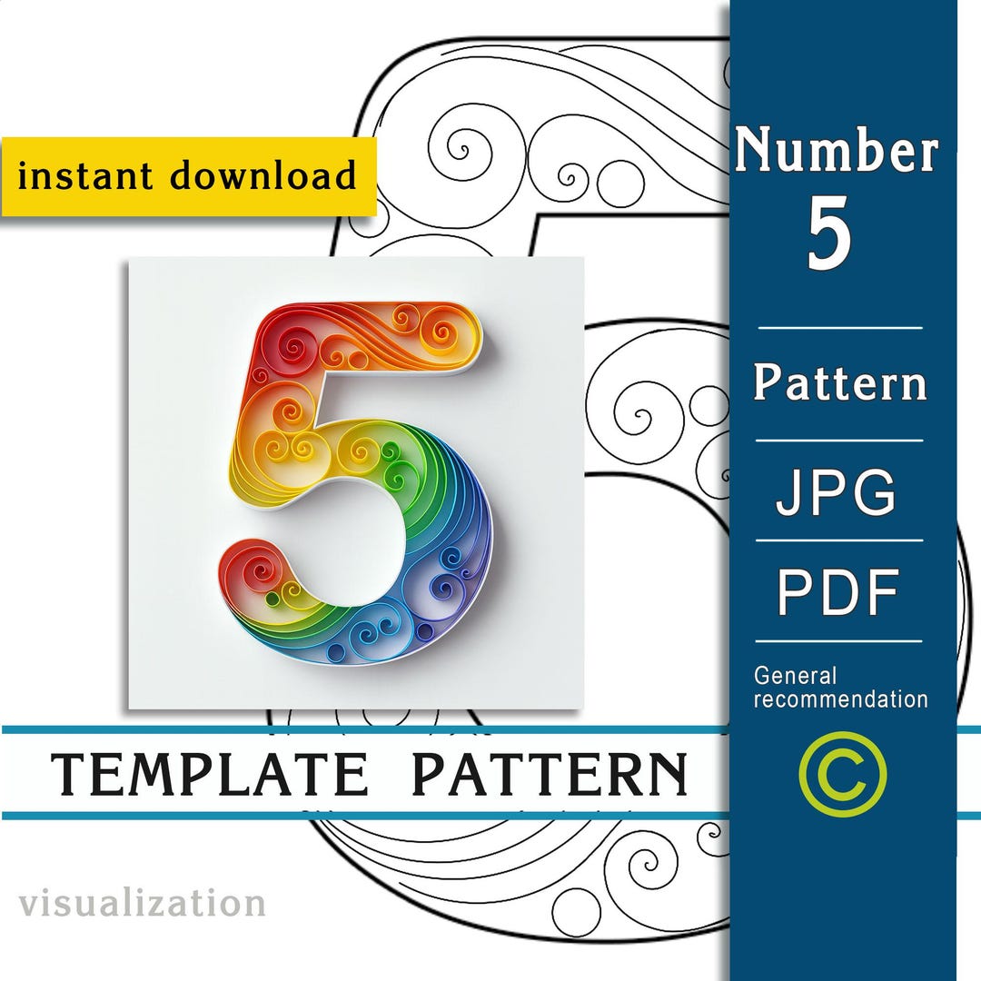 Quilling Number 5 Template – Printable Paper Craft Pattern (digital ...