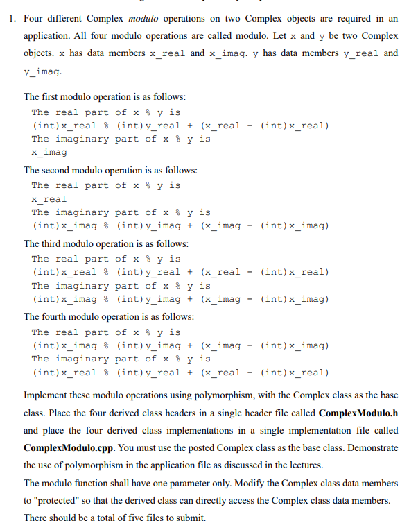 Solved 1. Four different Complex modulo operations on two | Chegg.com