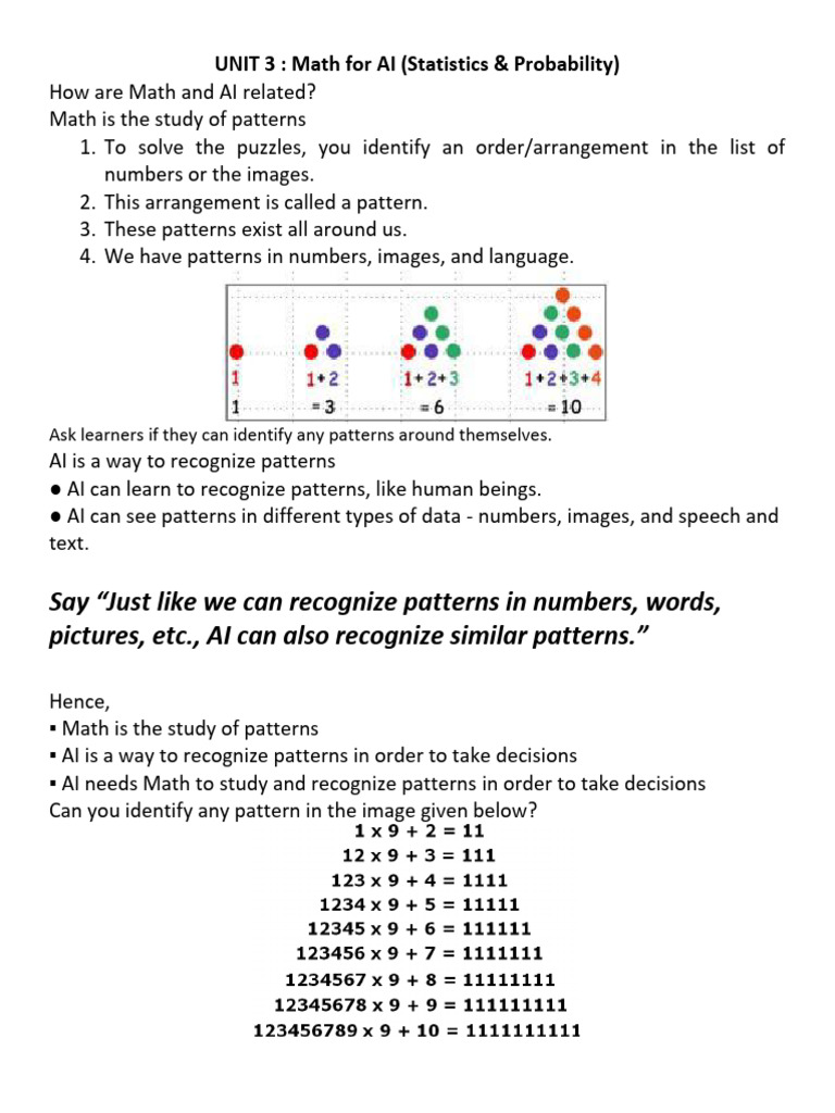 Math Patterns in AI: Stats & Probability | PDF | Probability | Weather