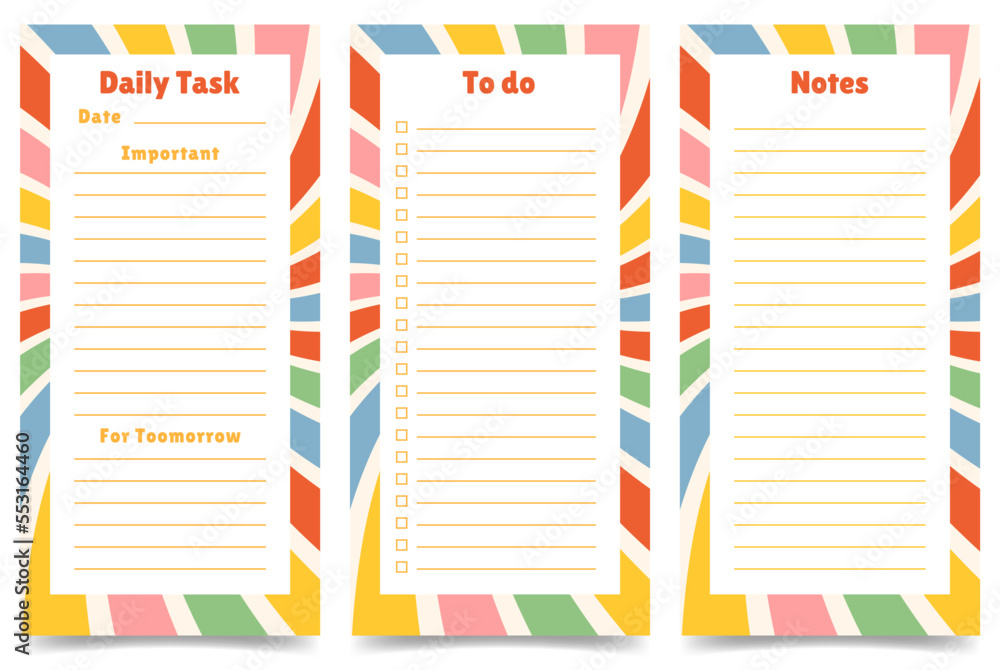 Set of planners, daily tasks, to do list, notes pages template ...