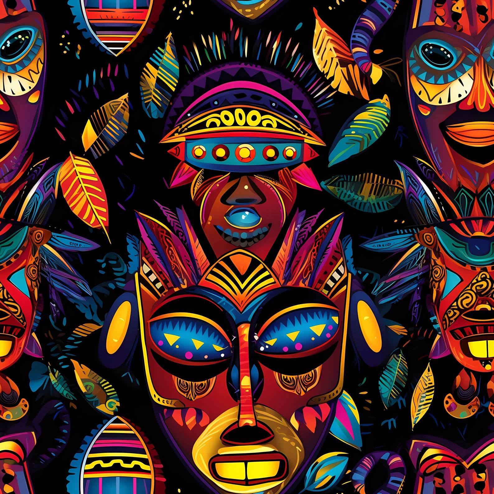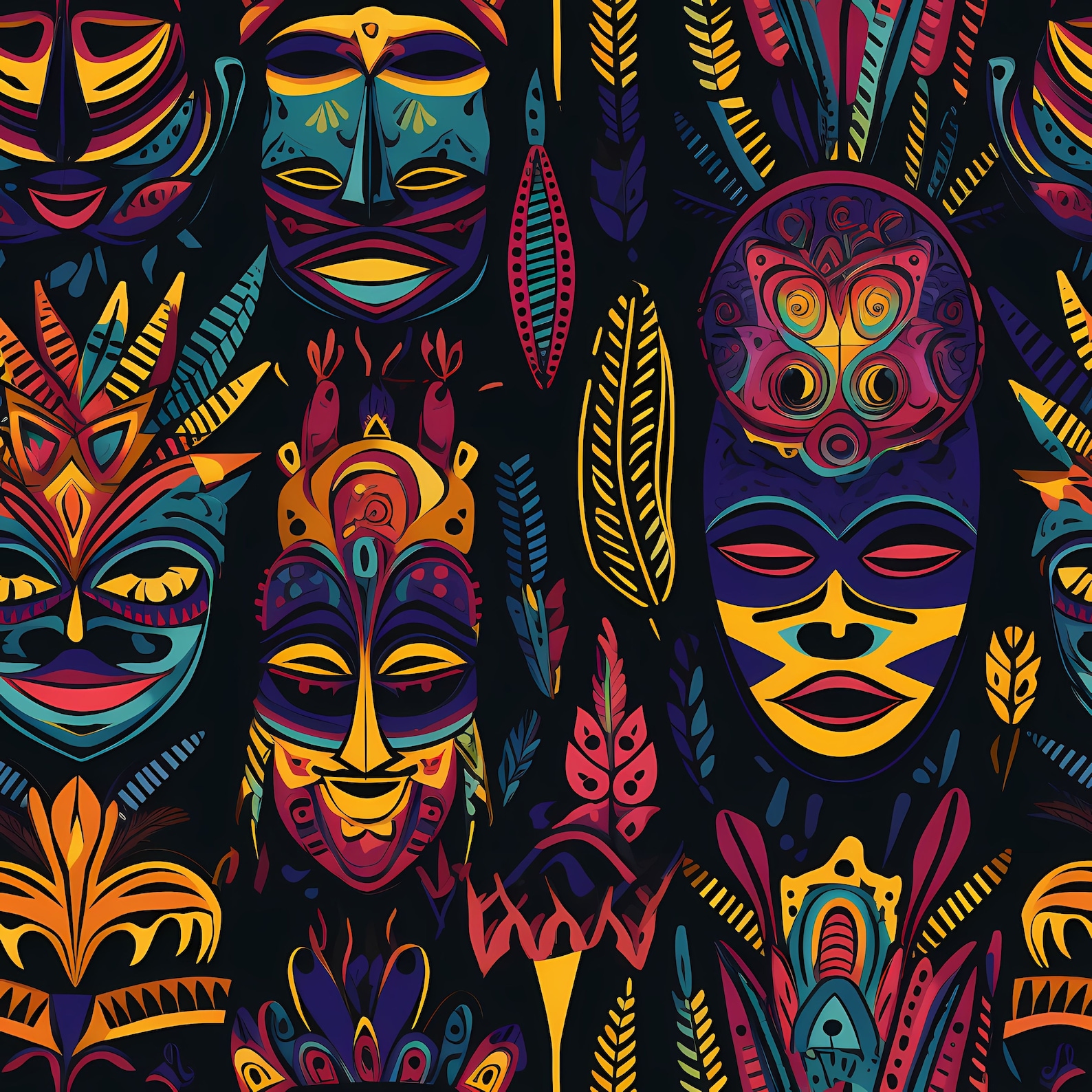 Traditional African masks arranged in a captivating pattern hd mask ...
