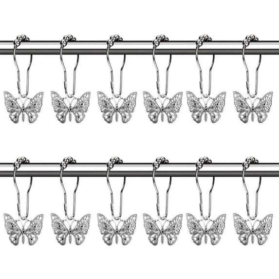 12PCS Butterfly Shower Curtain Hooks Rustproof Shower Curtain Hanger ...