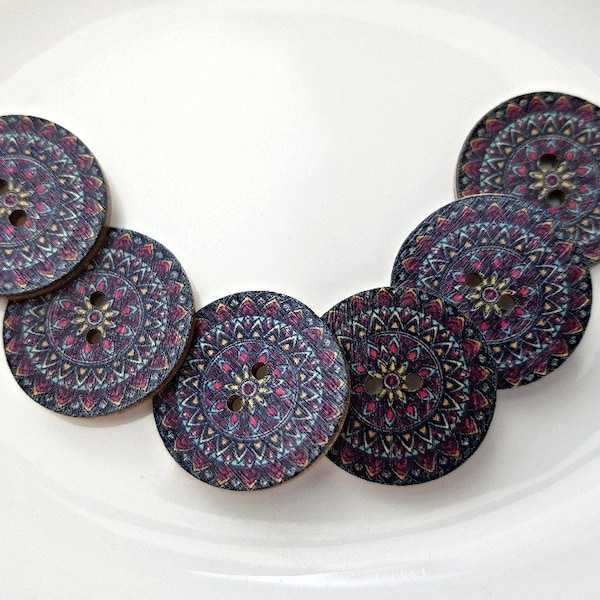 Mandala Wooden Buttons, Purple Bohemian Buttons, Tribal Patterned Boho ...