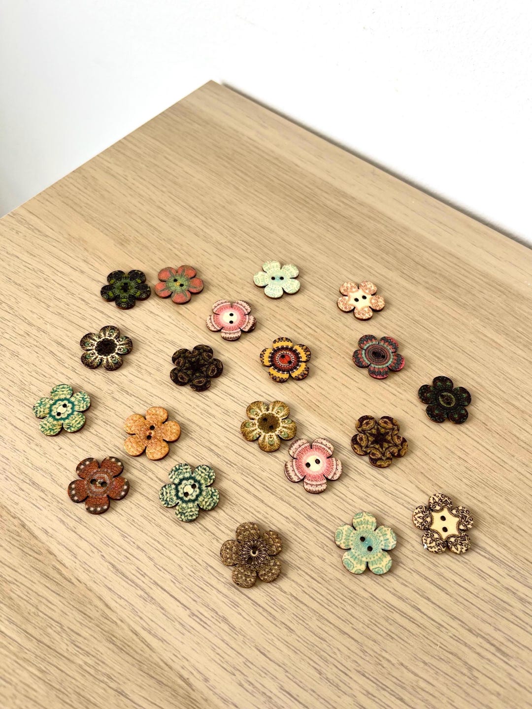 10/20/50 Wooden Flower Patterned Buttons || Assorted 70s 80s Sewing ...