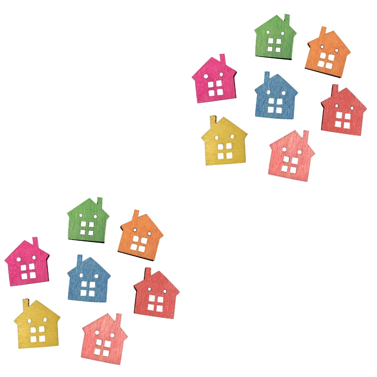 100 Pcs DIY Wooden Buttons Creative Colored Pattern Buttons Two Holes ...