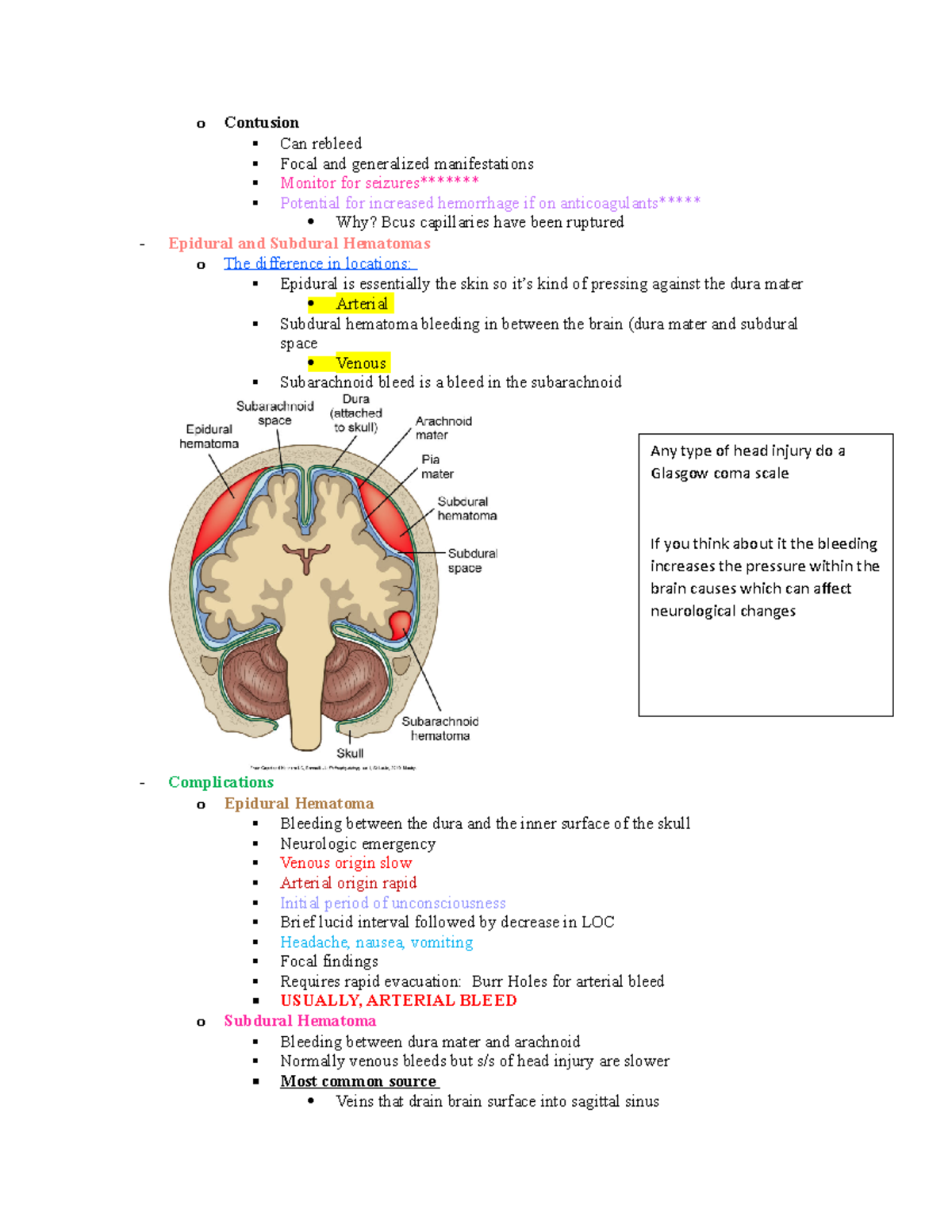 Contusions - Health concepts II - o Contusion Can rebleed Focal and ...