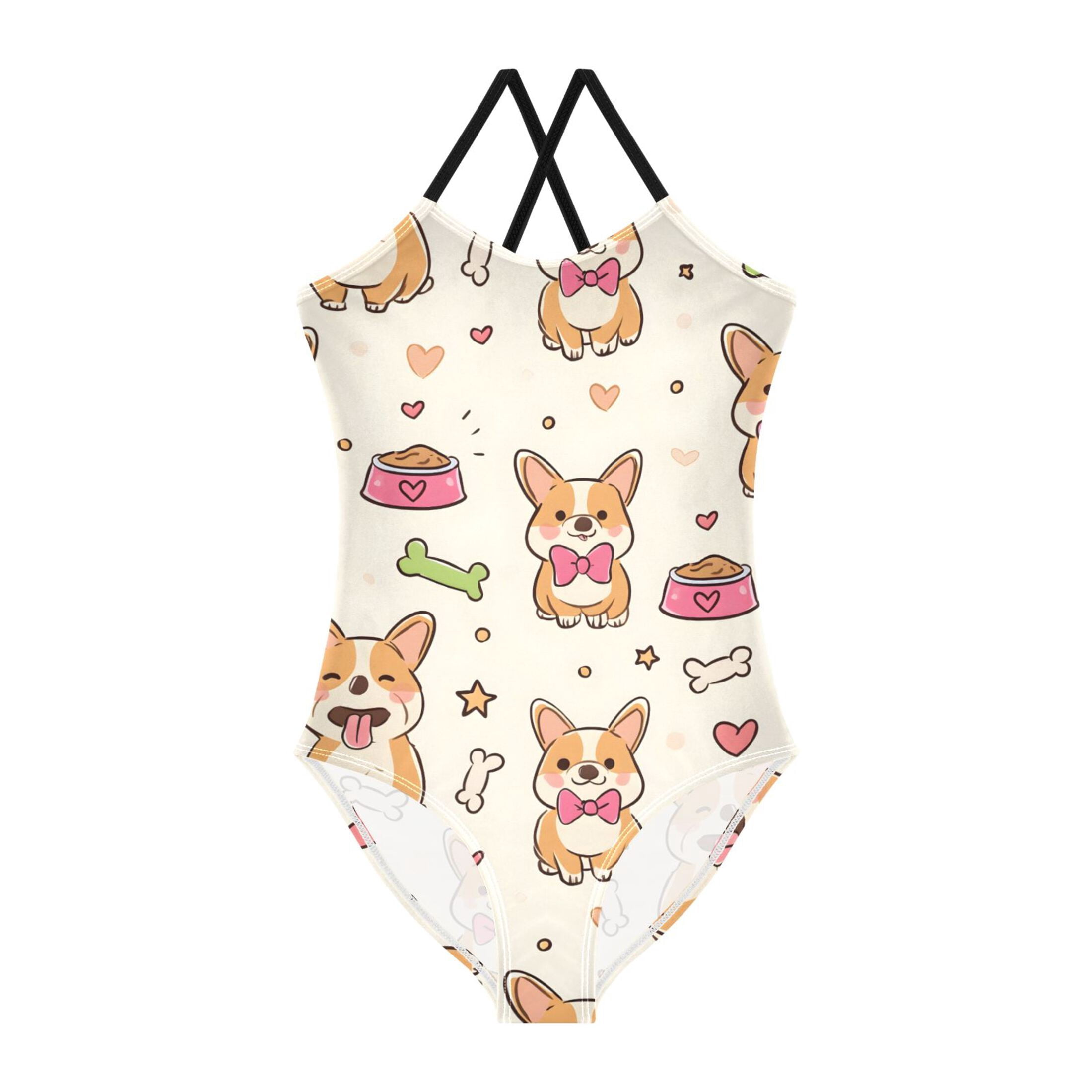 Corgi Dog with Bones Pattern Girls' One-Piece Swimwear 3T-10T Soft ...