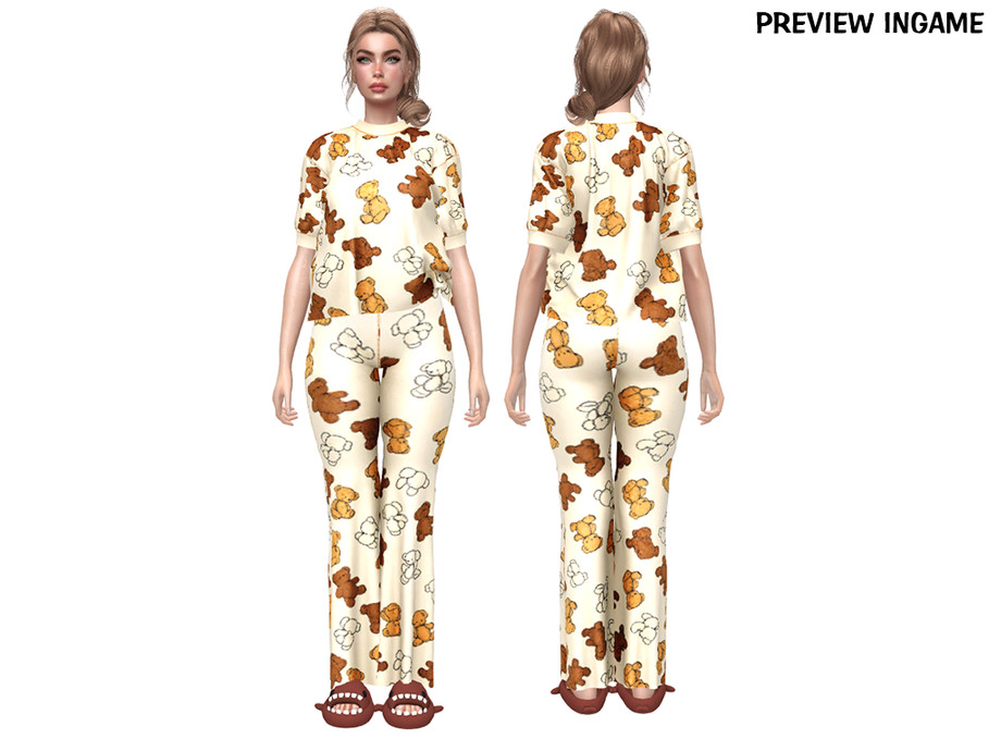 The Sims Resource | DAPHS - Clothes SET539 - Bear patterned pyjamas ...