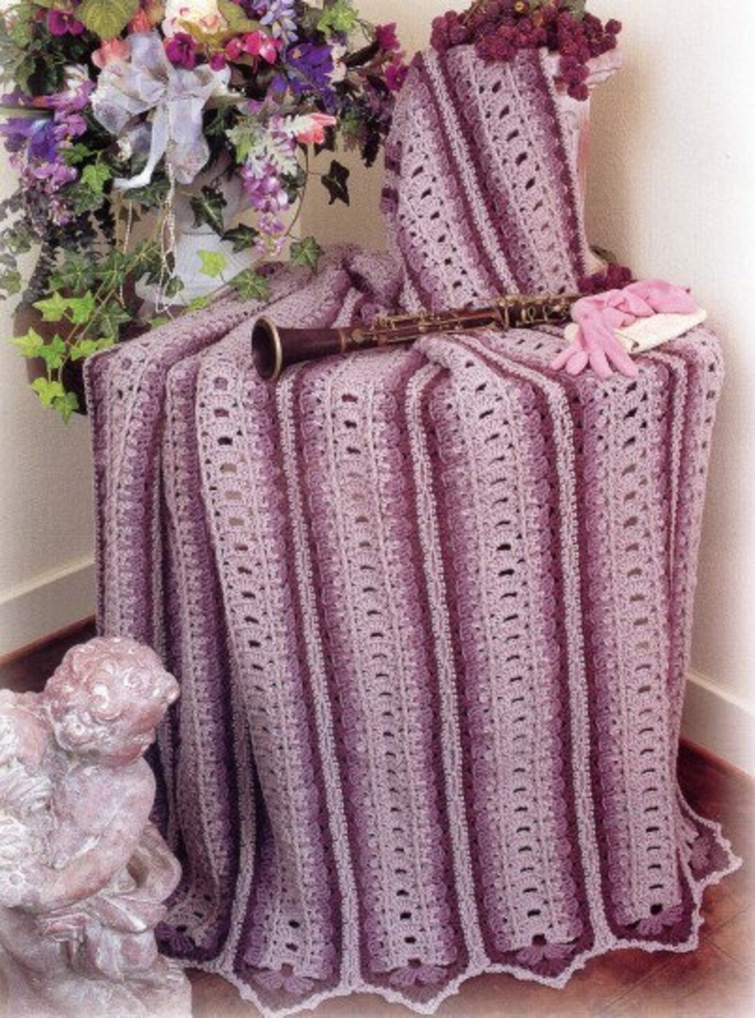 Vintage Crochet Pattern Lavender Echoes Lacy Strip Panels Afghan Throw ...