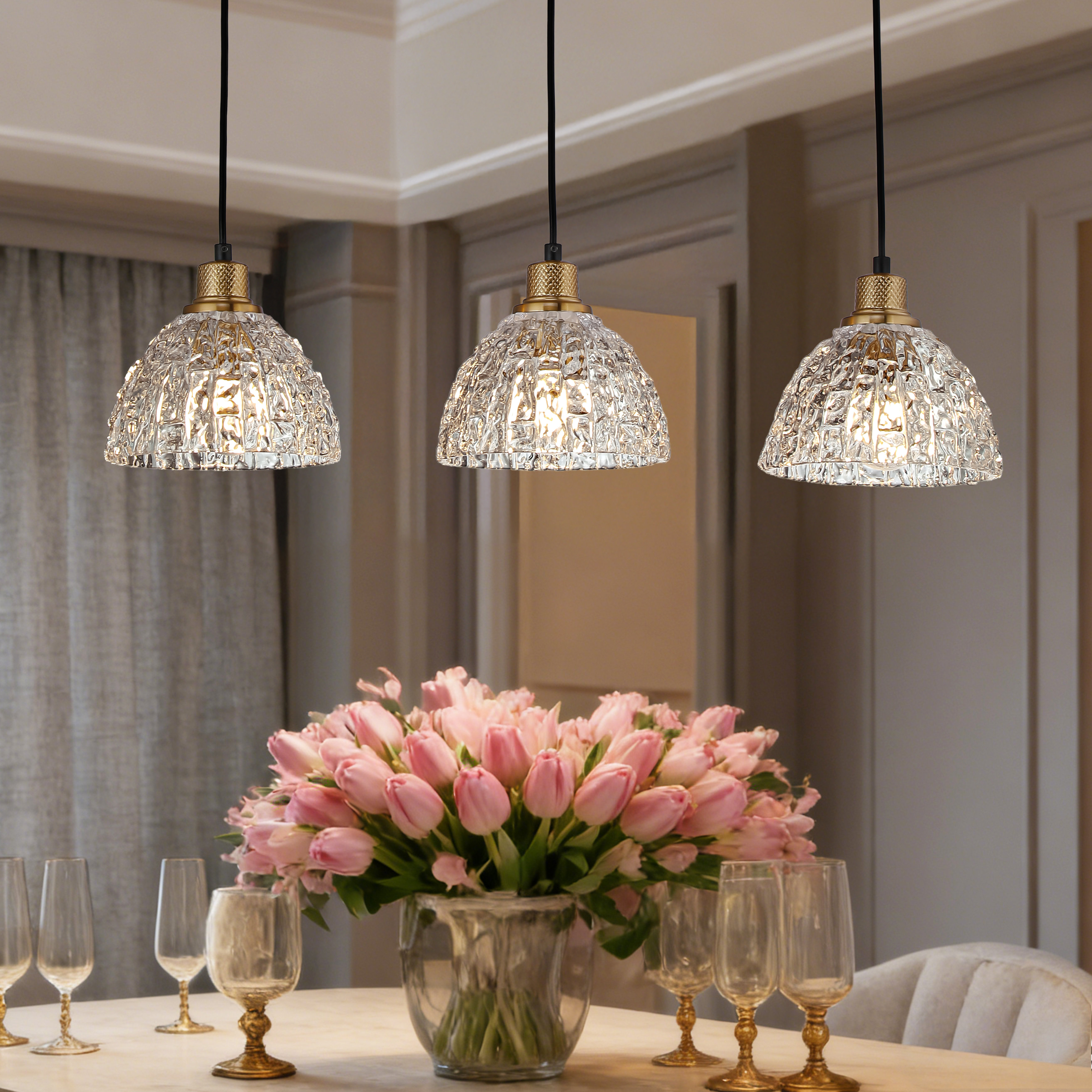 Red Barrel Studio® 3-light Dining Pendant With Bark-patterned Glass ...