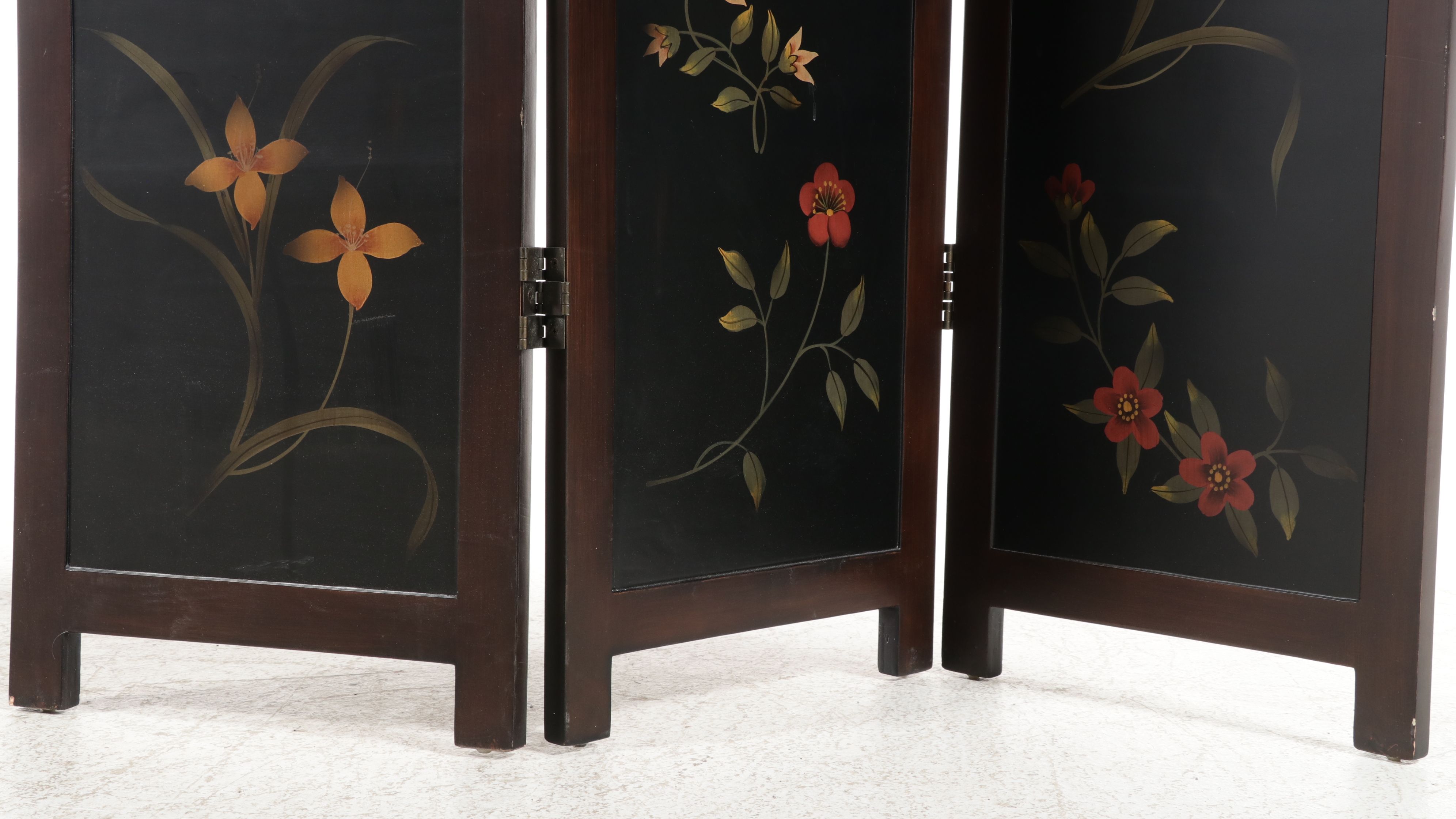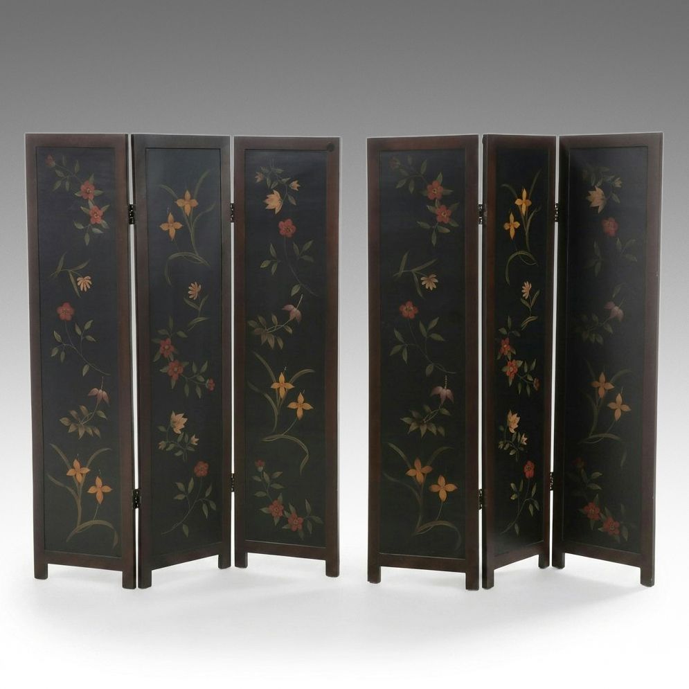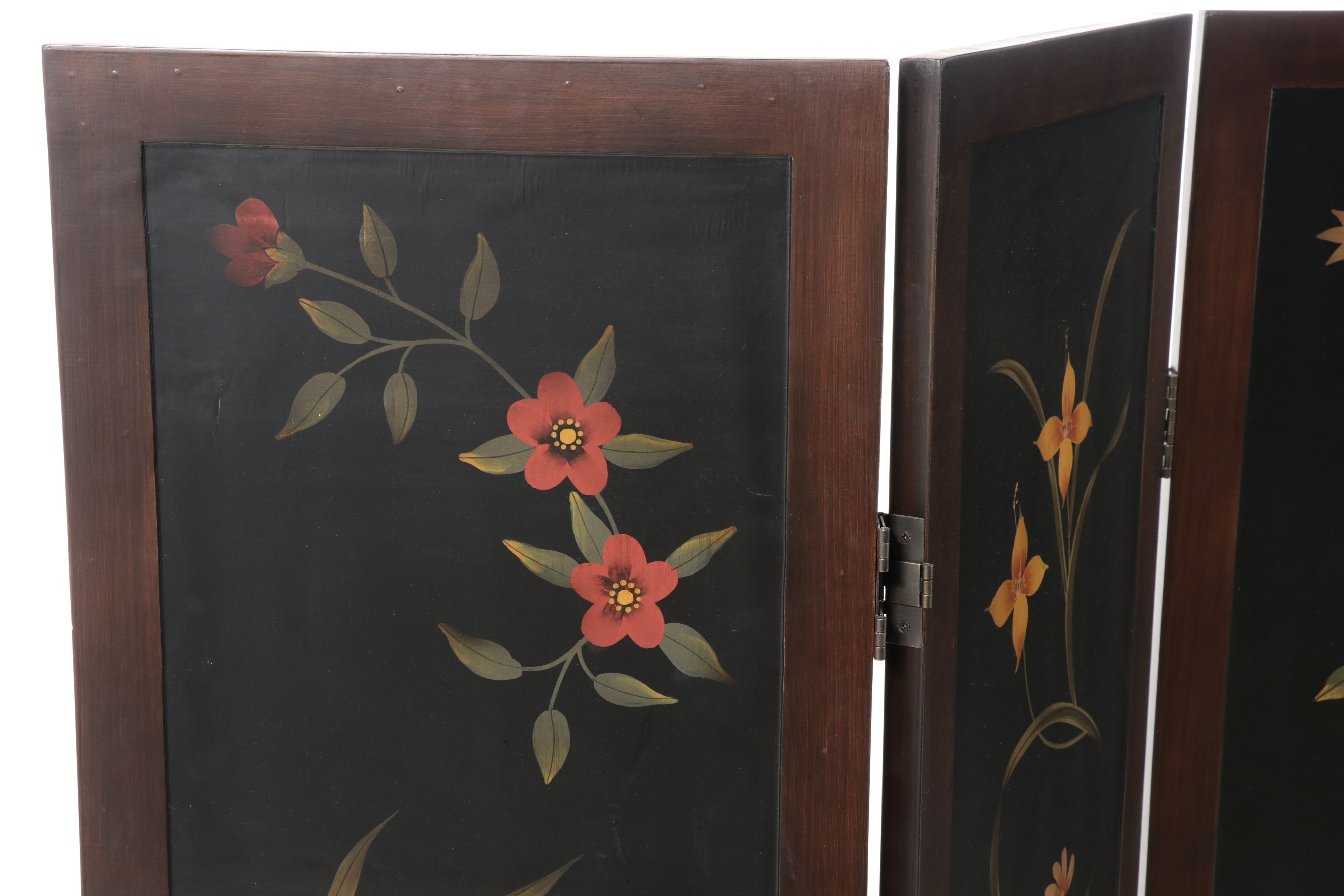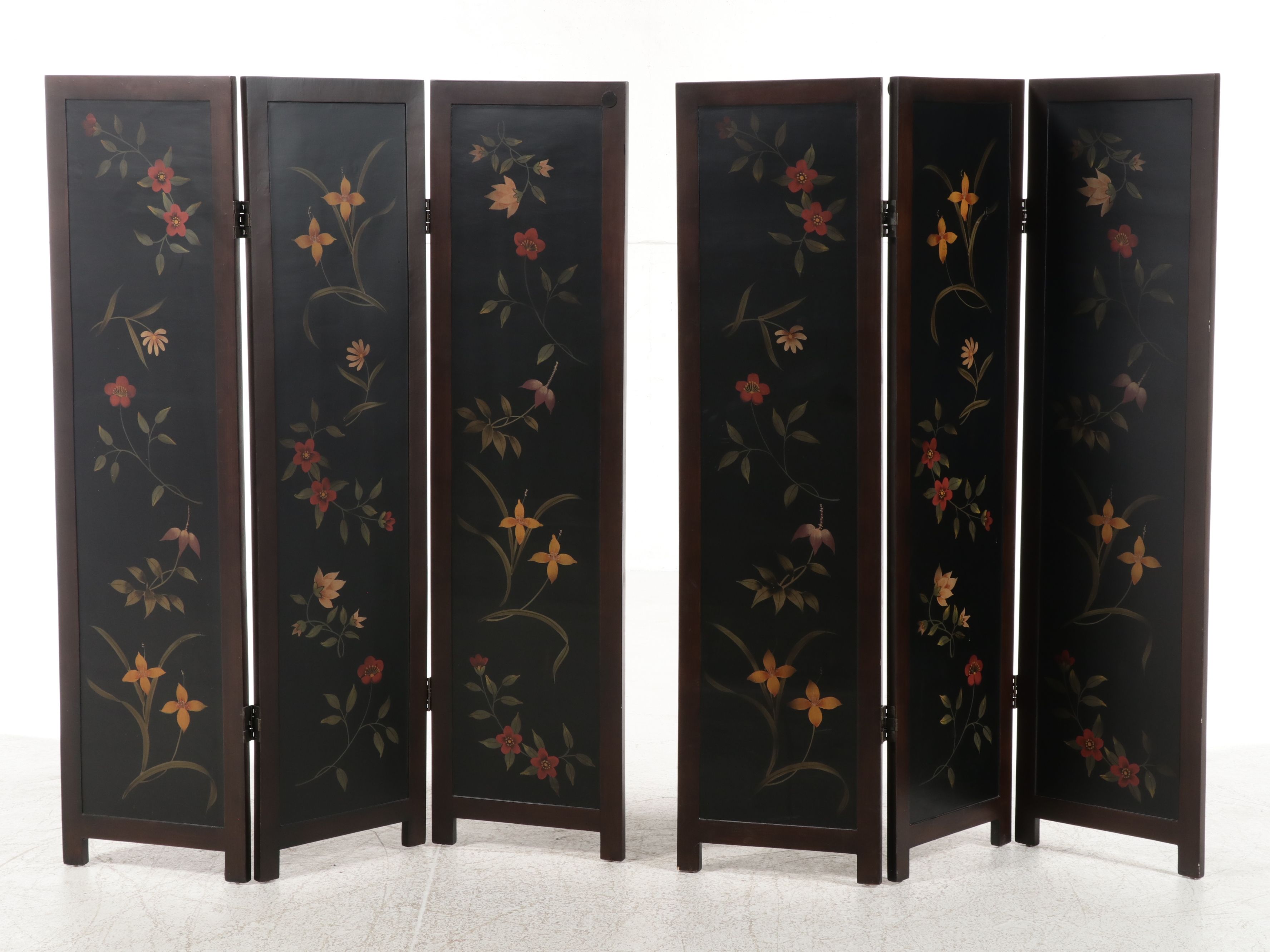 Pair of Three-Panel Floral Motif Painted Screens | EBTH