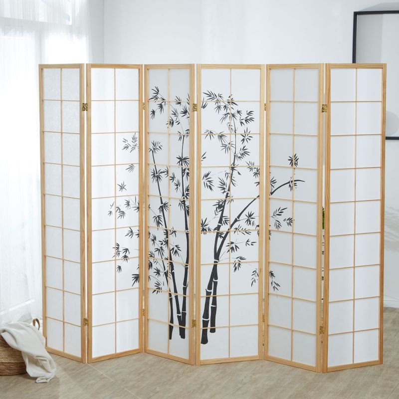 5-panel "Nature" folding screen with bamboo motif | Asian room divider ...