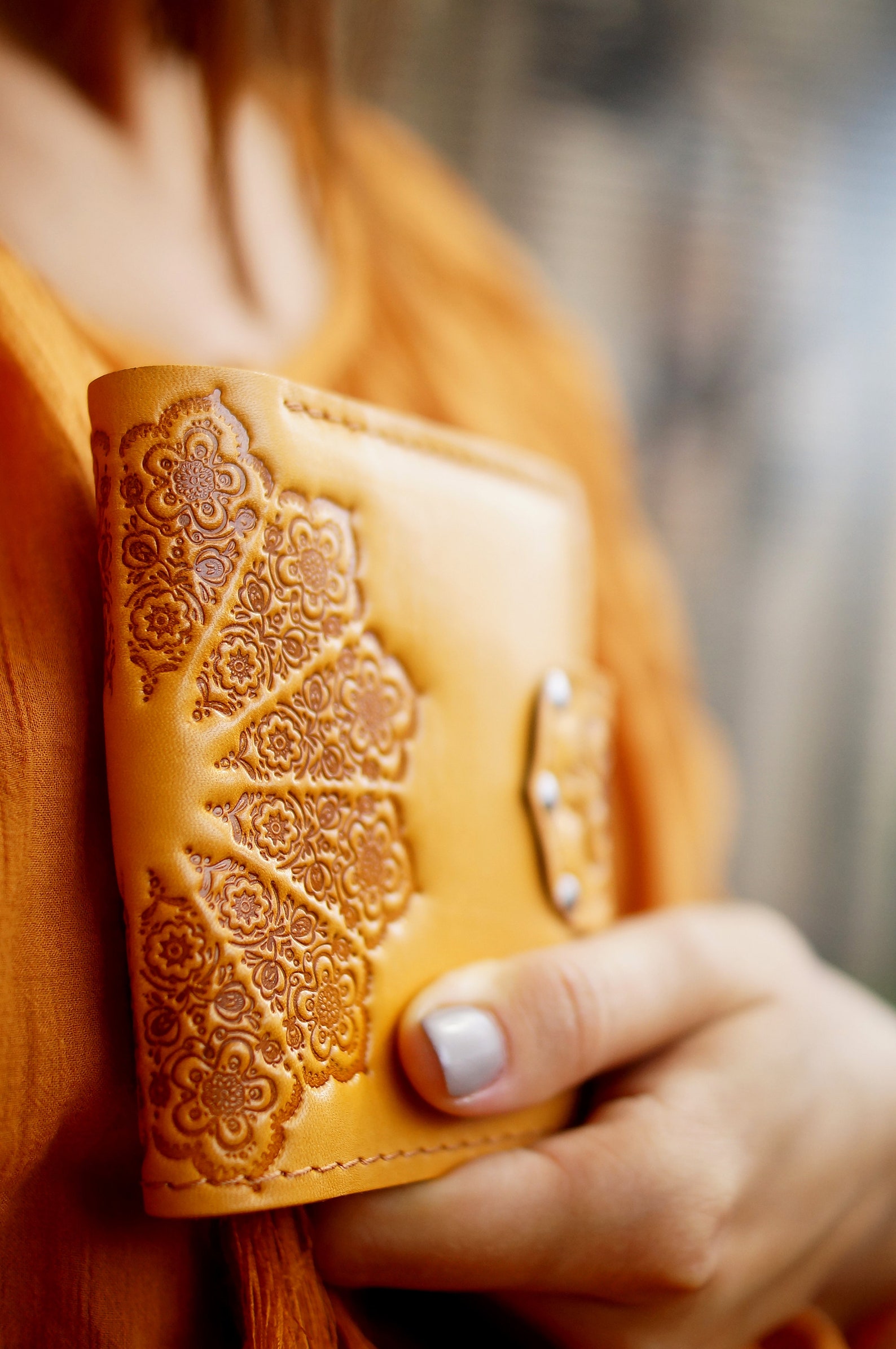 Hand Made Large Leather Ladies Wallet W Floral Pattern - Etsy
