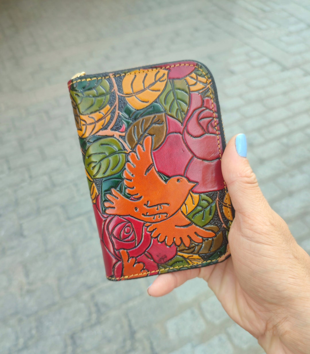Handmade Women's Leather Wallet With Hand Painted Flowers and ...