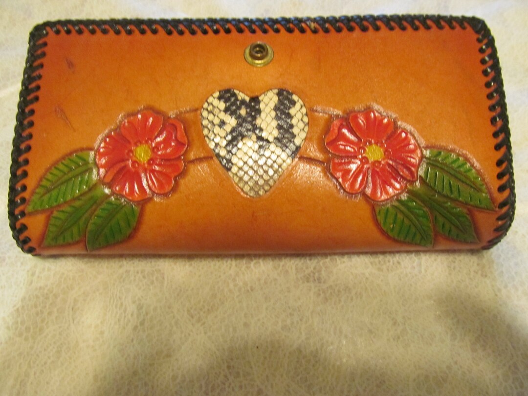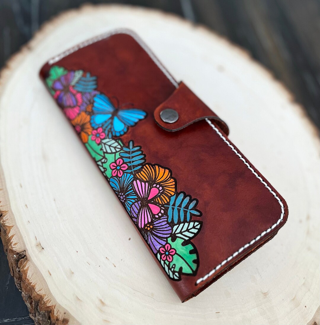Leather Wallet, Flower Wallet Hand Tooled and Hand Painted Long Leather ...
