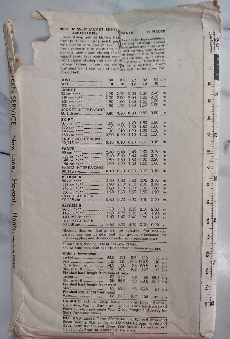 Vogue 9684 Jacket, Skirt, Pants and Blouse Pattern - Bust 32.5 Inch - Etsy