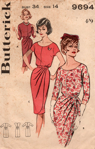 1960s CHIC Cocktail Party Draped Sheath Dress Pattern BUTTERICK 9694 ...