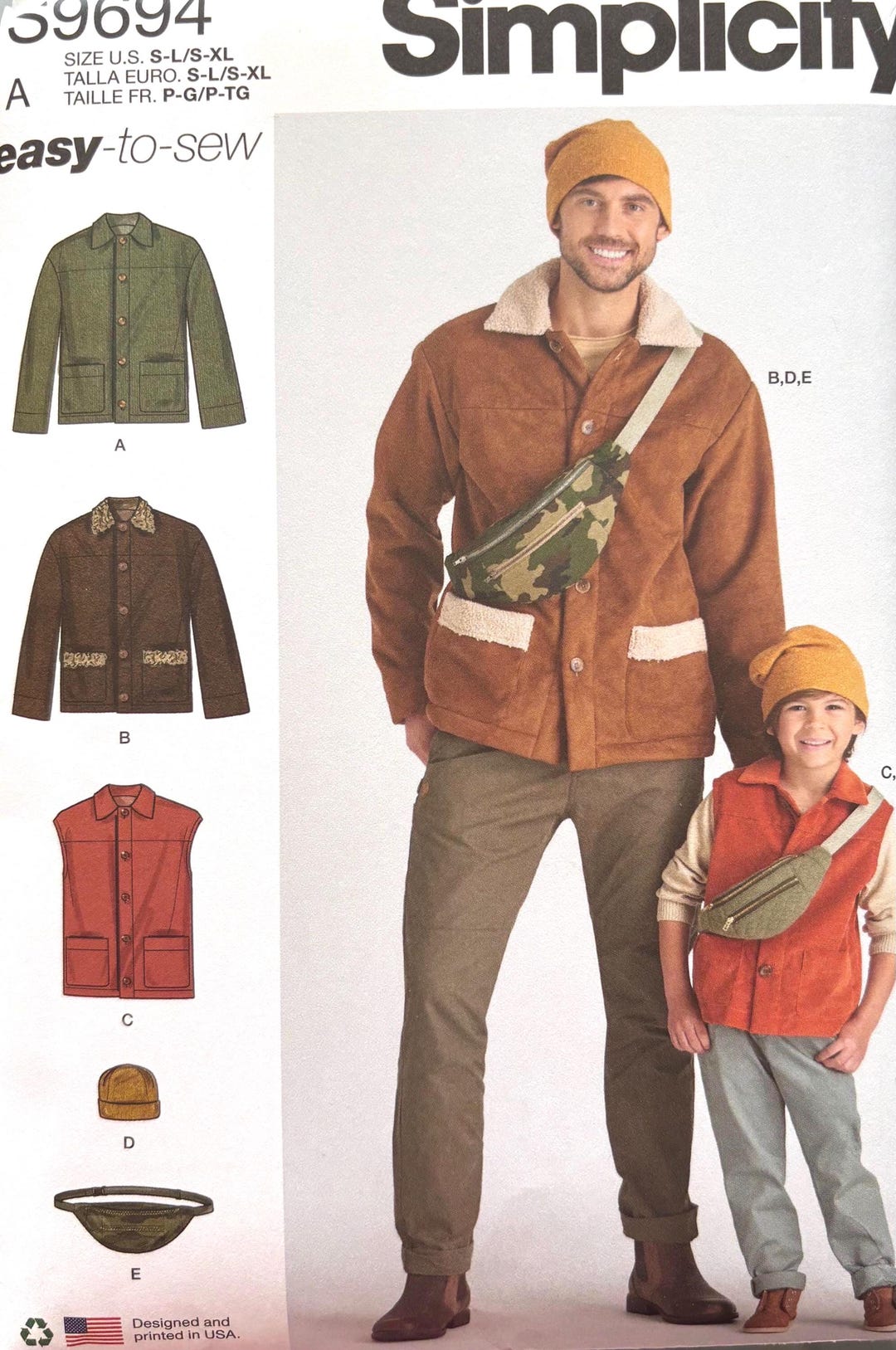 Sewing Pattern Simplicity 9694 Men's Boys Jacket Vest Hat Crossbody Bag ...