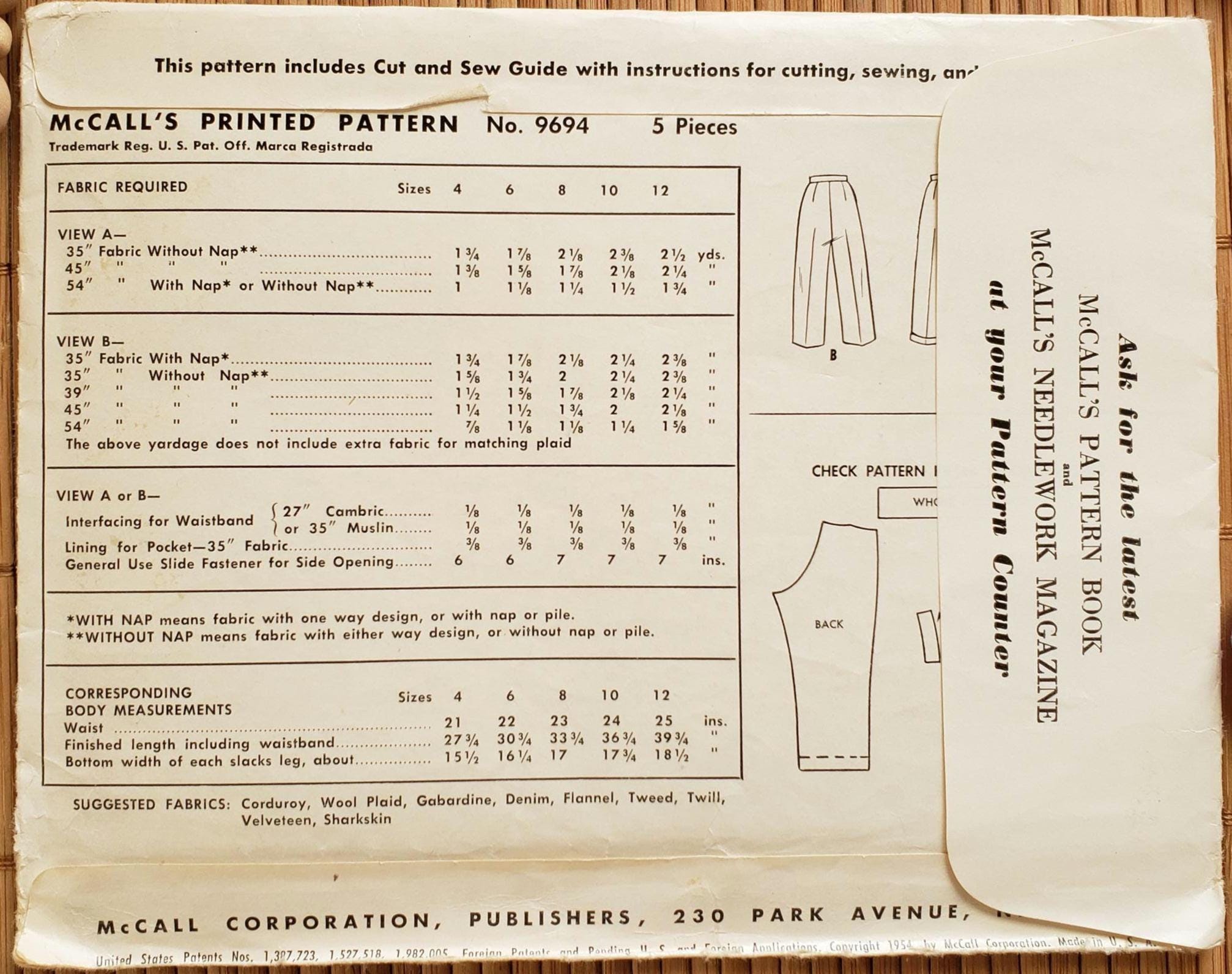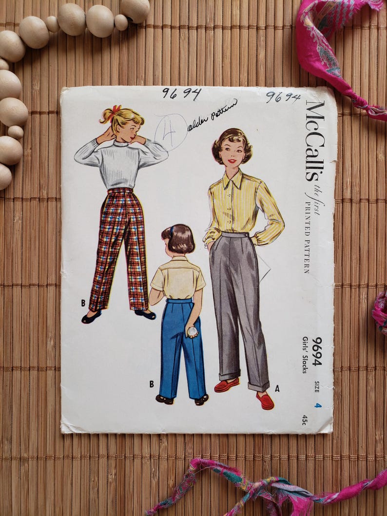 Mccall's 9694 Girls Pants Pattern, Vintage Kids Sewing, 50s Girls ...