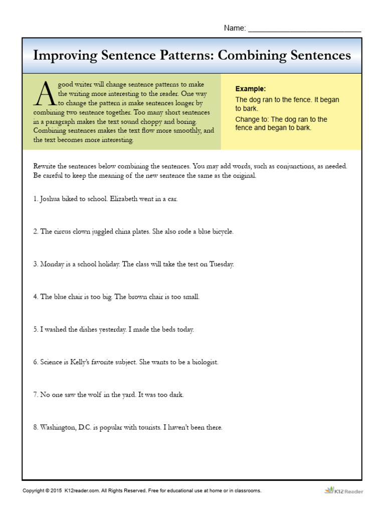 Improving Sentence Patterns Combining Sentences | PDF